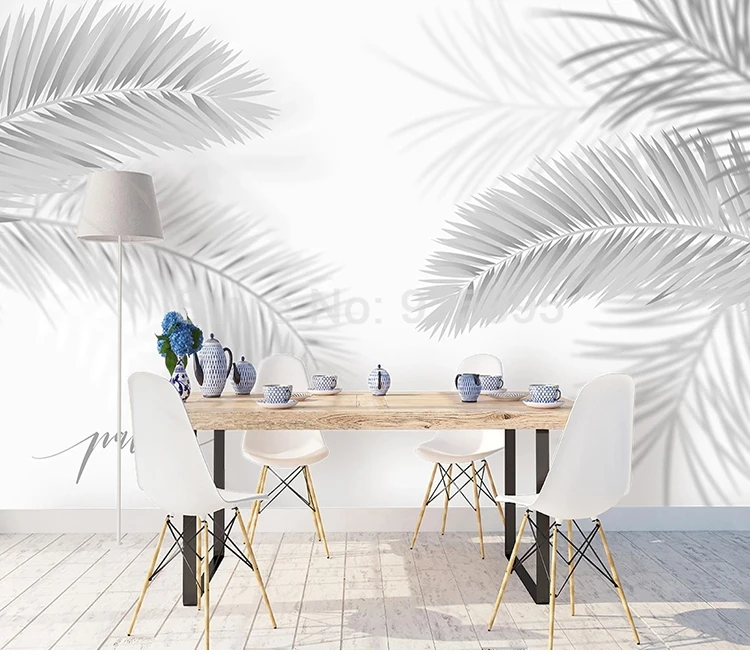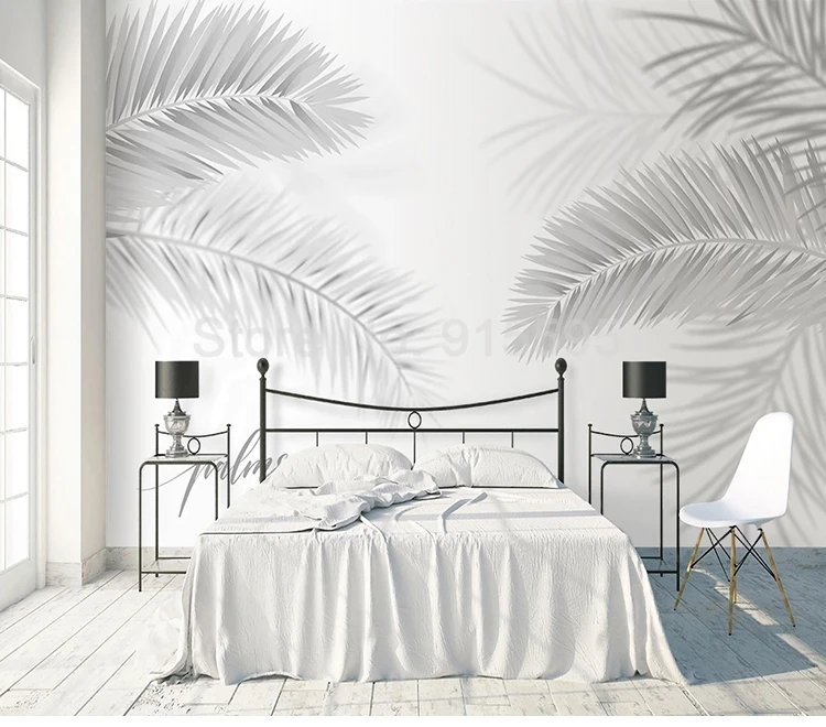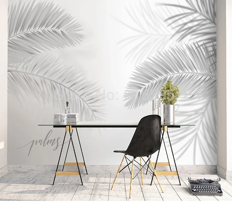 Пользовательские 3D Настенные обои, современные черно-белые, ручная роспись листьев, искусство, настенная живопись для гостиной, столовой, спальни, фон