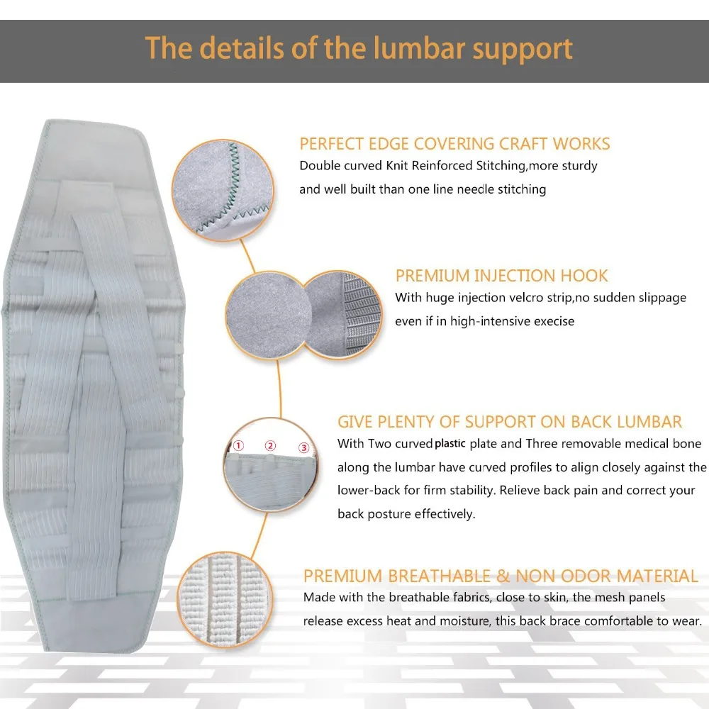Опора нижней части спины для различных условий: острая и хроническая лумбаго, радикула, грыжа диска, хроническая мышечная слабость и другие состояния, вызывающие боль и дискомфорт в нижней части спины, И требует умеренной и твердой поддержки мышц спины. Комфорт и свобода движения: прочная, легкая, дышащая, гибкая, Влагоотводящая трикотажная ткань, которая сохраняет тело прохладным, сухим и комфортным во время физической активности, И обеспечивает стабильность без ограничения основных движений. Тонкий дизайн: тонкий дизайн и легкость включения и выключения позволяют носить заднюю скобку в течение длительного времени под обычной одеждой. Инновационные особенности для максимального эффекта: конструкция ткани равномерно распределяет давление и воздействие, обеспечивает мягкое сжатие, обеспечивая дополнительную поддержку и массажный эффект, тем самым снимая воспаление и боль. Адаптируемый Металл сохраняет максимальную поддержку, способствует правильному выравниванию позвоночника и помогает с правильной осанкой. Регулируемые эластичные поперечные ремни обеспечивают дополнительную прочную контролируемую поддержку, обеспечивая комфортный диапазон движений. Мгновенное облегчение и комфорт: поясничная опора обеспечивает мгновенное облегчение, поддерживает спину в удобном, но стабильном положении и позволяет продолжать активные действия при заживлении спины.