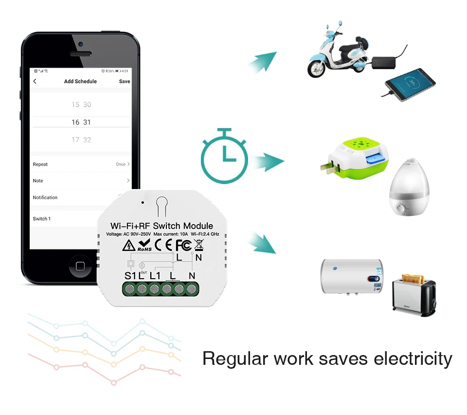 1.Легко заменить ваш традиционный переключатель, чтобы сделать его умным