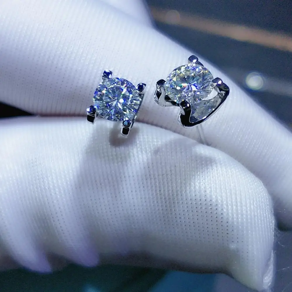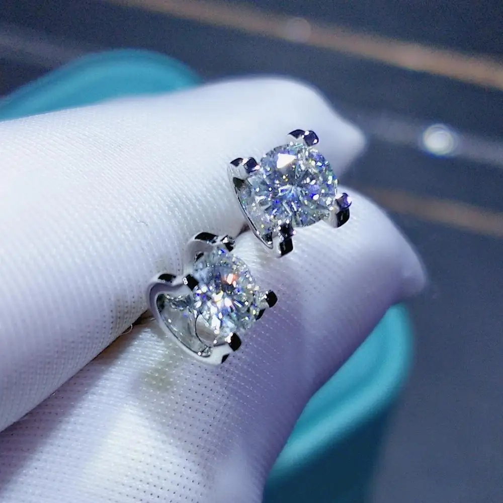 Роскошные круглые серьги с бриллиантами VVS1, 1 карат, всего 2 карата, круглые, с бриллиантами, тест d-образного цвета, серьги с муасанитом, серьги-пусеты с головой коровы для женщин