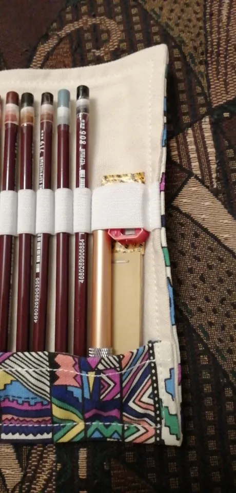 Очень хорош пенал, пошит качественно, нитки не торчат. Карандаши даже с удлиннителями хорошо входят в резинки. Только электрический ластик не пристроен. Доставили дней за 10-12. Всем довольна. Продавцу спасибо!