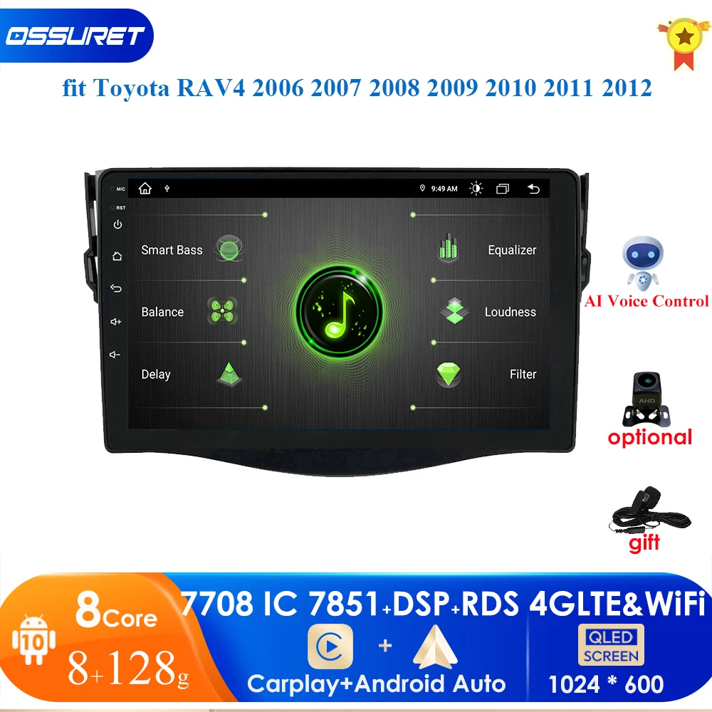 Автомагнитола 2DIN, 7 дюймов, Android 10, для Toyota RAV4, 2006, 2007, 2008, 2009, 2010, 2011, 2012, GPS-навигатор, мультимедийный проигрыватель