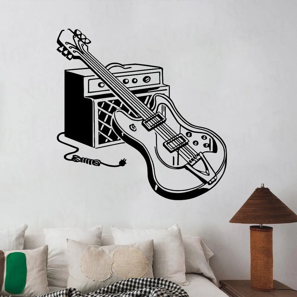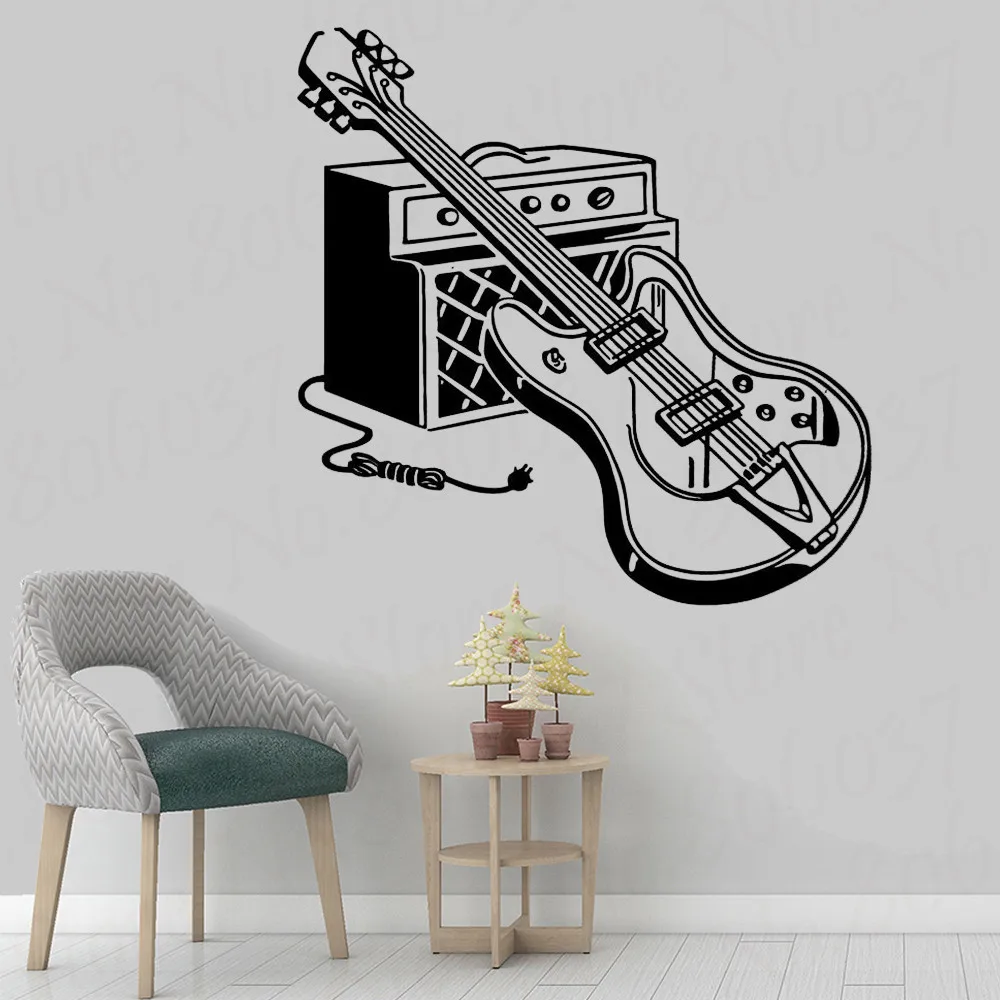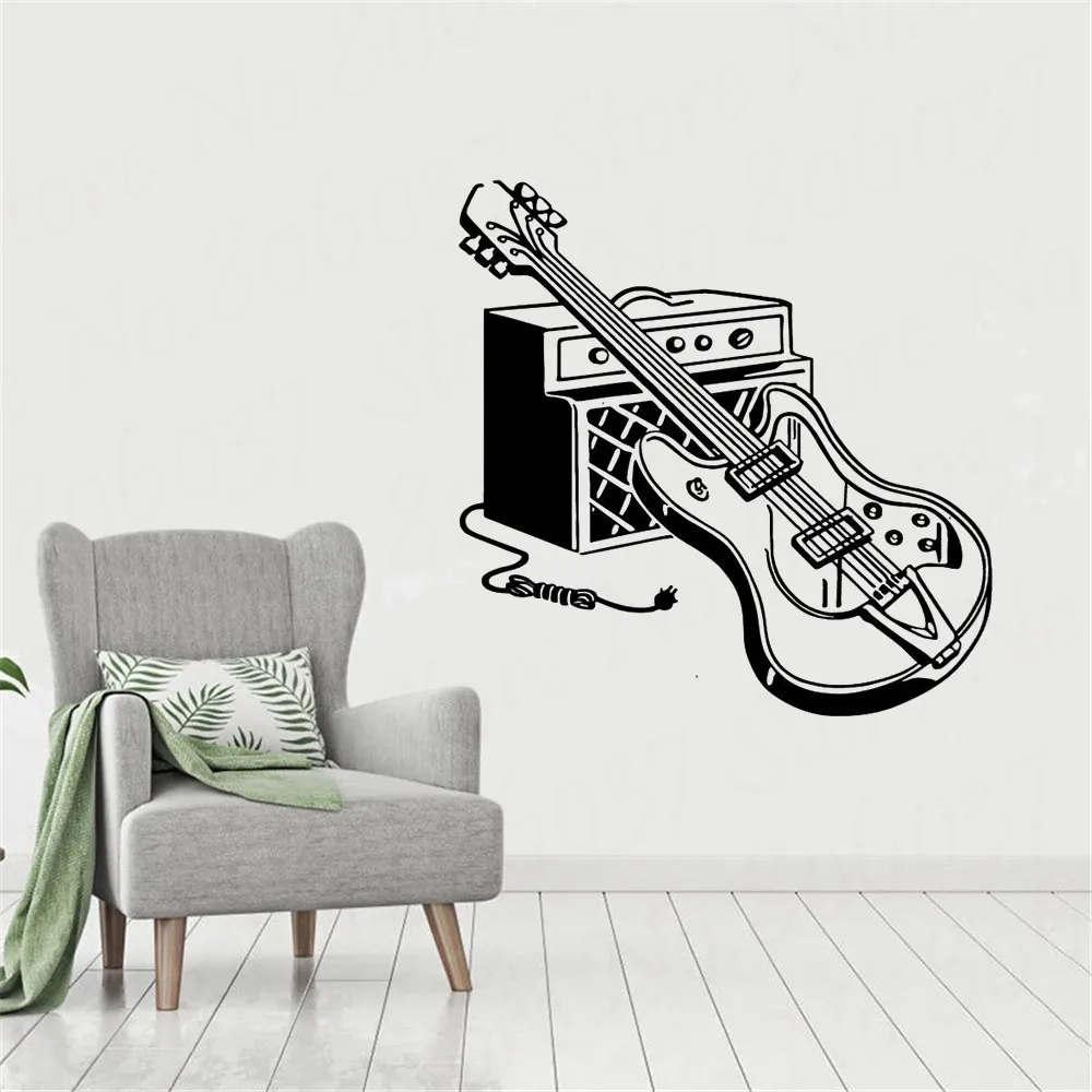 Настенная Наклейка с изображением электрогитары, настенные Переводные картинки, домашний декор для музыки, современная детская комната, съемная наклейка s WL1444