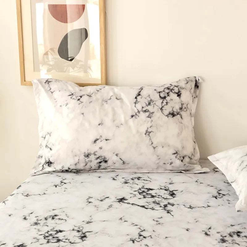 Простыня Bonenjoy с мраморным рисунком, 3 шт., черно-белые простыни и наволочка размера Queen, 180x200