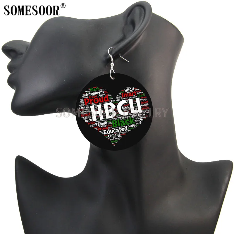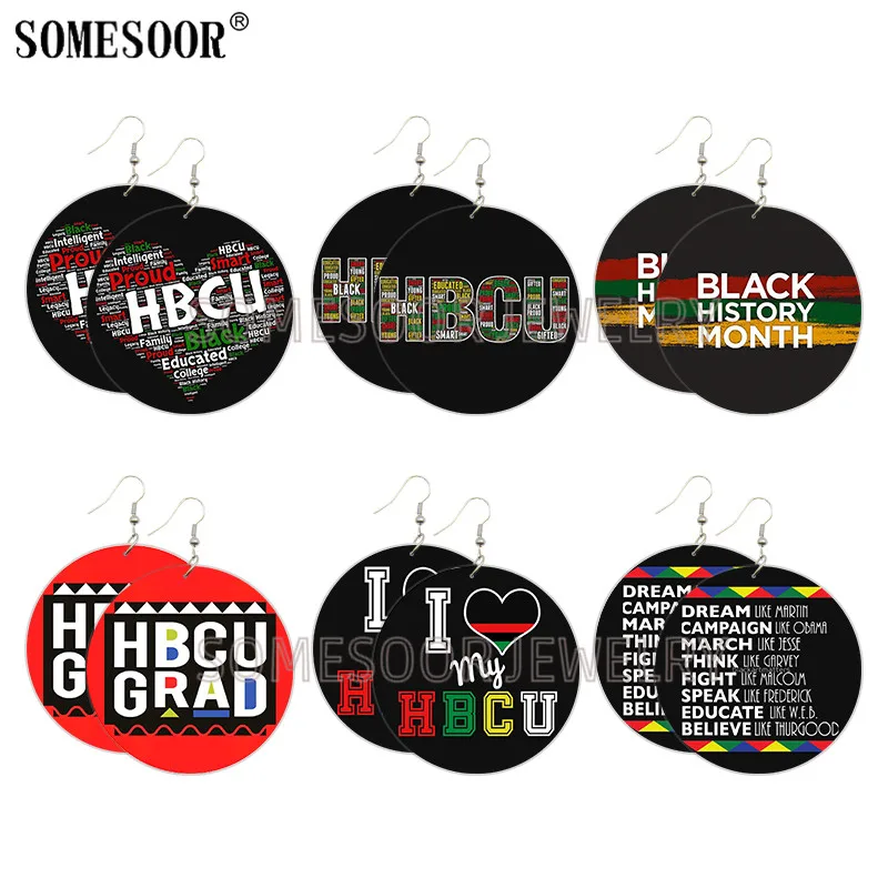 Деревянные серьги-подвески SOMESOOR Love HBCU, черные, с историческим принтом, гордые, умные, Вдохновляющие высказывания, Деревянные ювелирные изделия для женщин, подарок