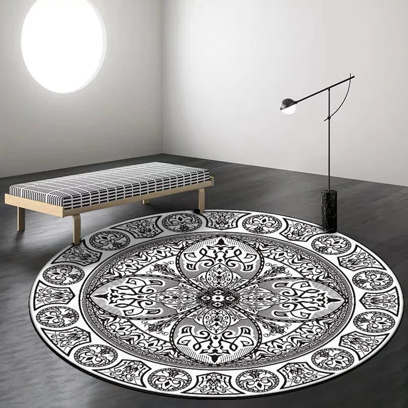 Черный круглый ковер для гостиной, ковер с рисунком мандалы, Класси...