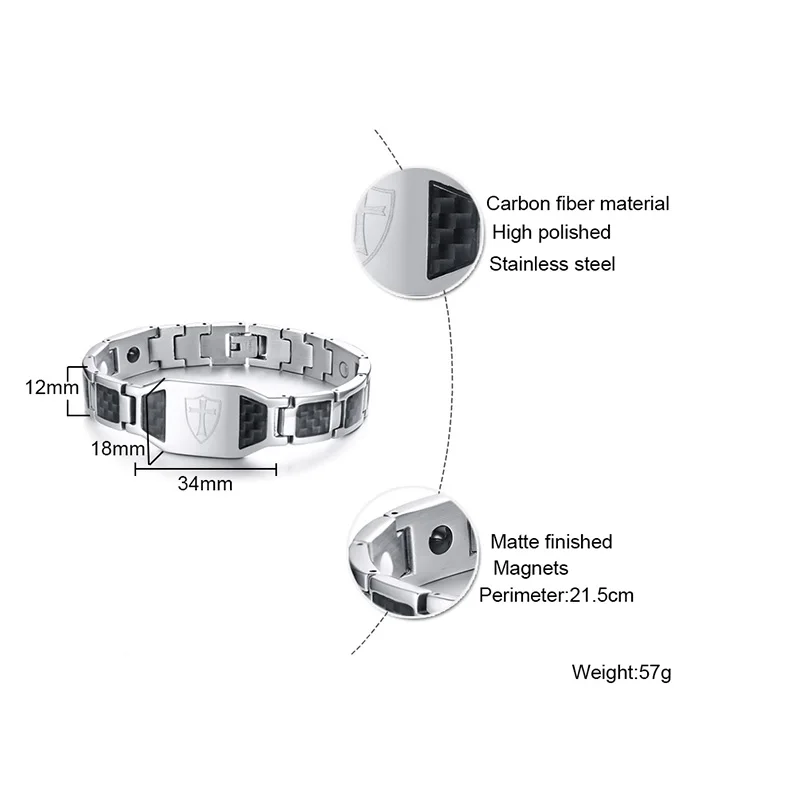 Магнитный мужской браслет с крестом, браслет из нержавеющей стали с цепочкой для удостоверения личности, из черного углеродного волокна, магнитный энергетический браслет для мужчин, Прямая поставка