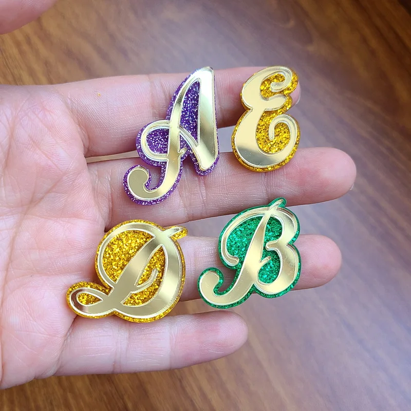 1-дюймовыечистые этикетки пробки с акриловым лазером 2 слоя блестящие повседневные шрифт начальных букв, серьги со шпилькой, для ребенка платье для мамы и чехол типа "сделай сам" Забавные ювелирные изделия