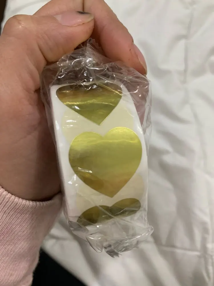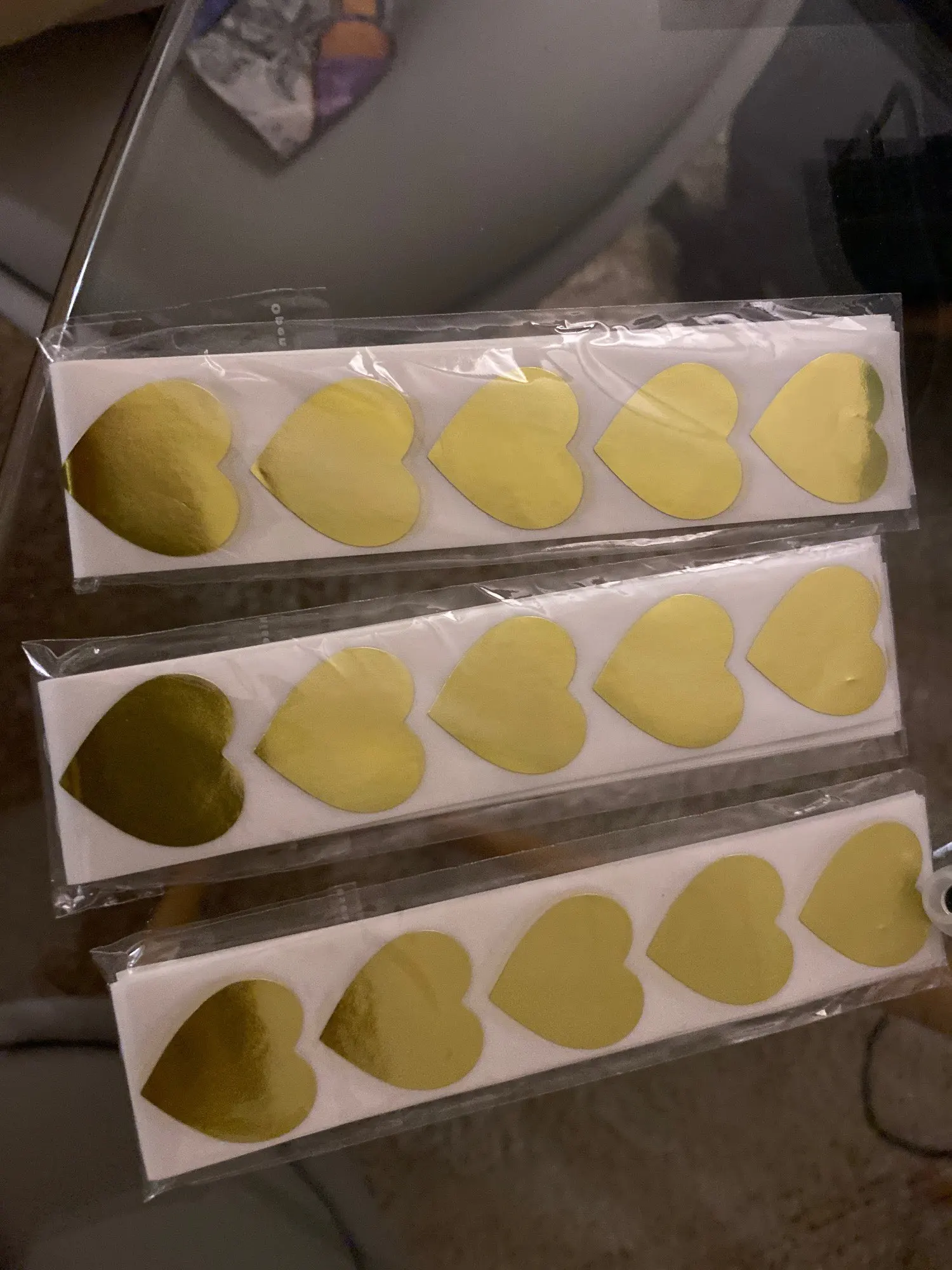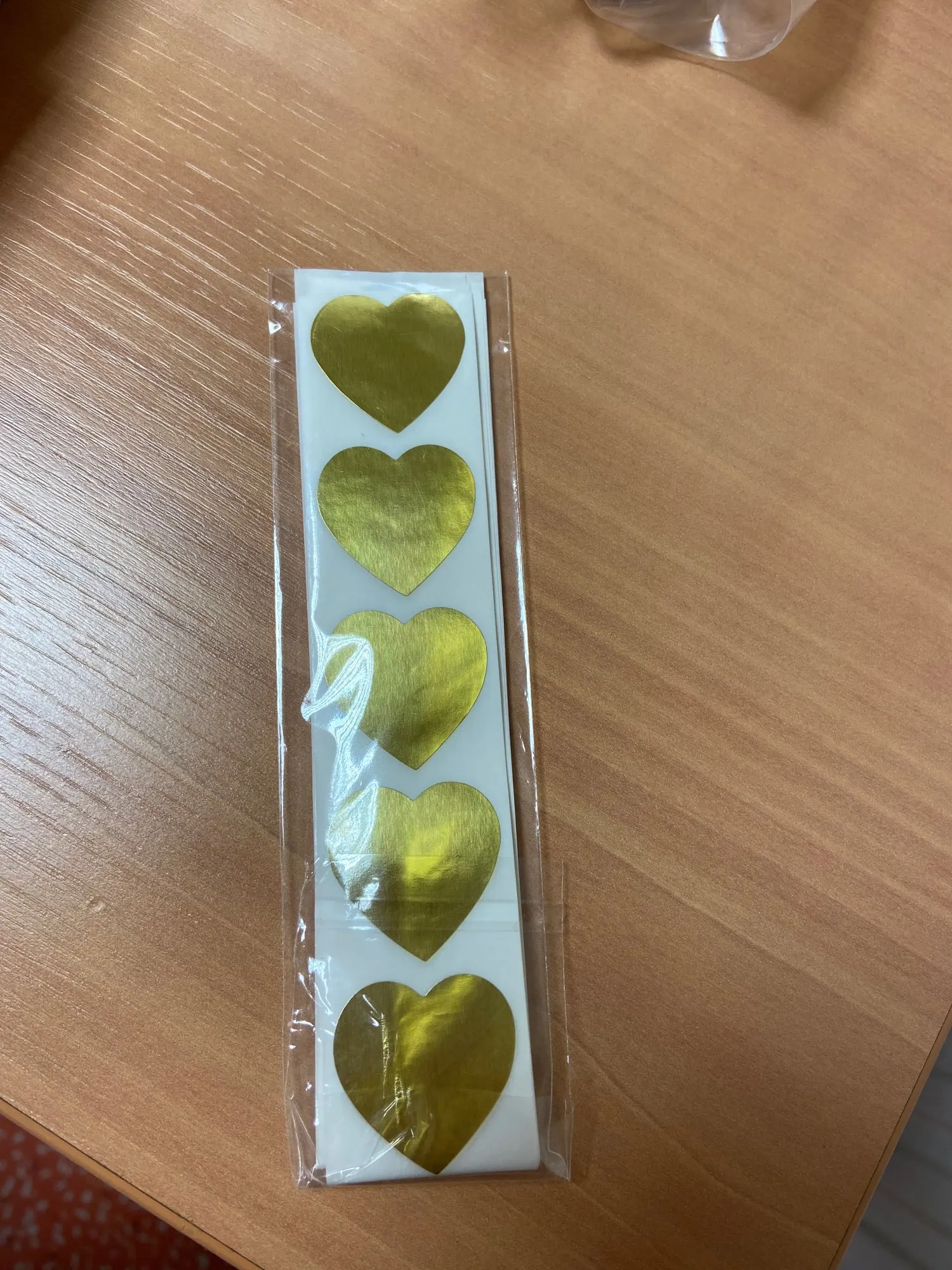 Вместо наклеек в форме сердца пришли золотые кружочки :( С продавцом не общалась.