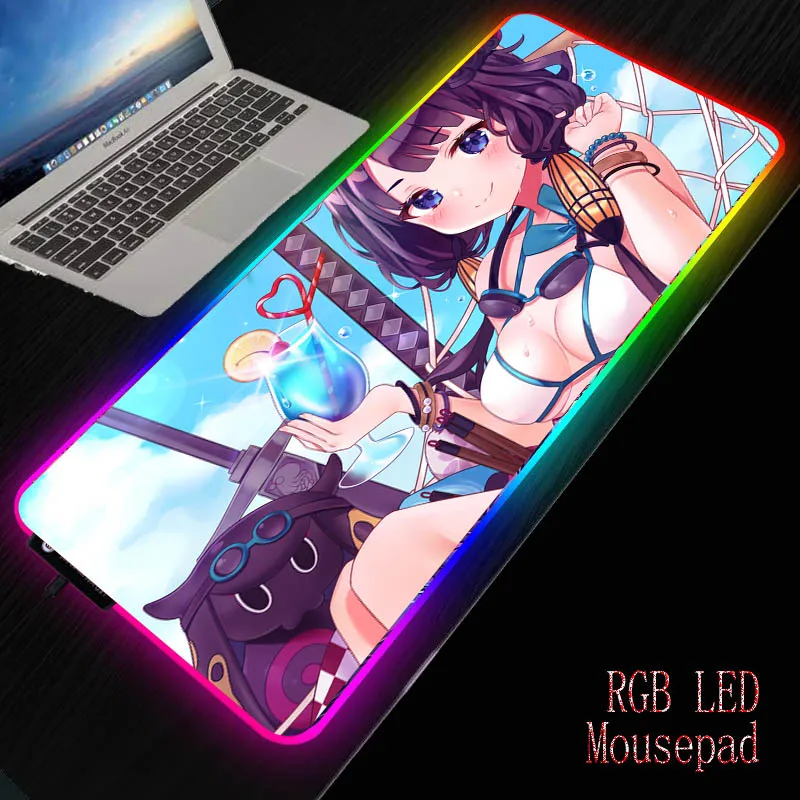 Коврик для мыши, с RGB-подсветкой, с японским аниме, подсветкой