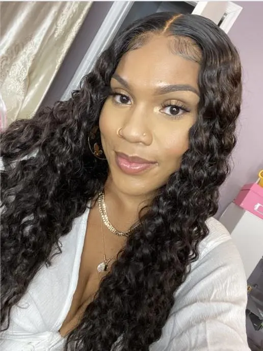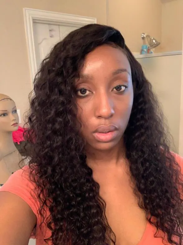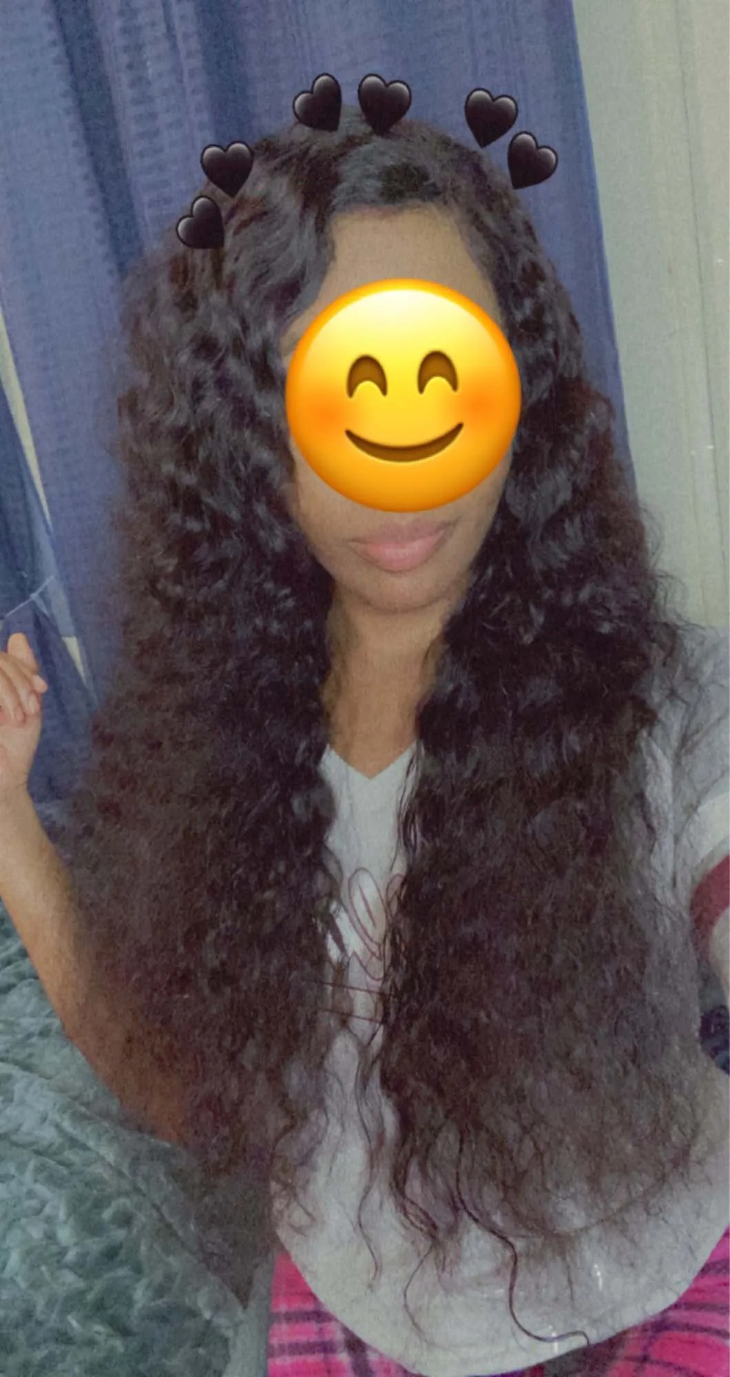 About two weeks ago, I purchased this water wave wig immediately, the seller got in contact with me for questions. My wig came on time, and in a cute little pink bag. Out of the packaging, I fell in love with the hair. I got my hair installed by someone who always does my hair. Her words, “wow, this lace is blending with your hairline well!” I’ve had this hair in for a week now and is experiencing minimum shedding to no shedding at all! I usually never leave reviews but this wig definitely deserves some recognition!