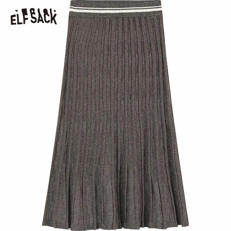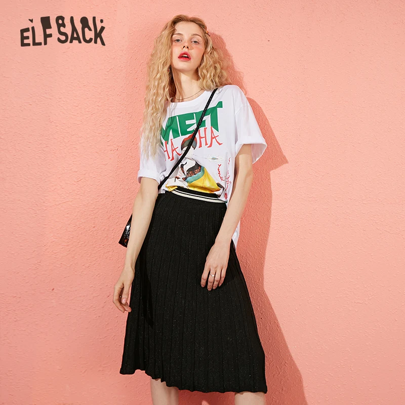 Женская плиссированная юбка ELFSACK, черная однотонная яркая повседневная юбка с высокой эластичной талией в Корейском стиле, лето 2020