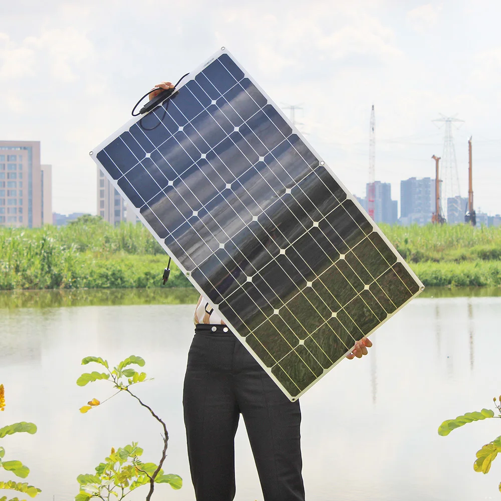 Набор солнечных панелей 300Вт, 200Вт, 100Вт, гибкие, 12В, с контроллером, для использования в машине и на лодке, для зарядки батареи