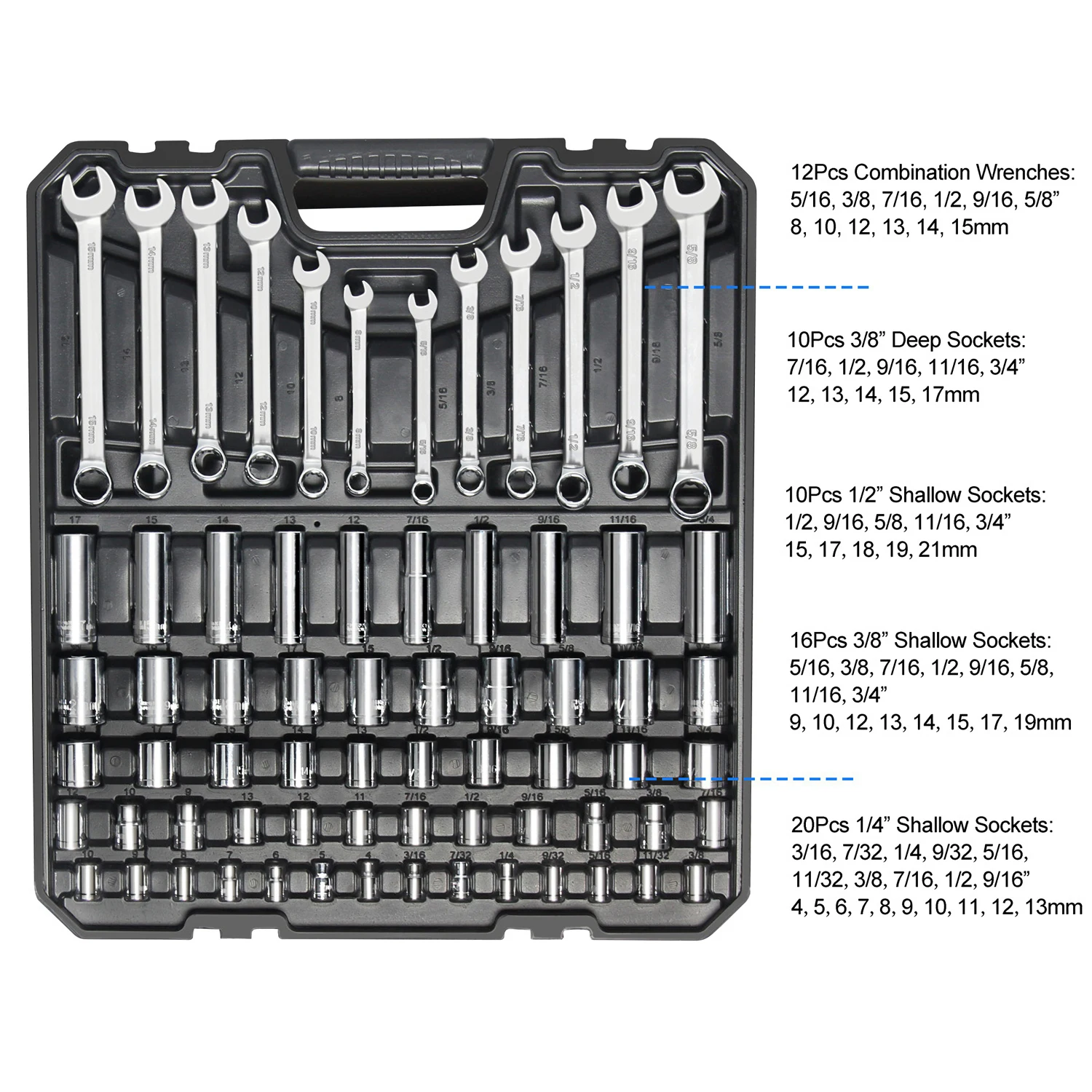 228 шт., набор ручных инструментов для ремонта автомобиля, 12 38 дюймов, набор ручных трещоточных ключей, торцевых инструментов для автомобиля, Reapair с набором инструментов от PROSTORMER