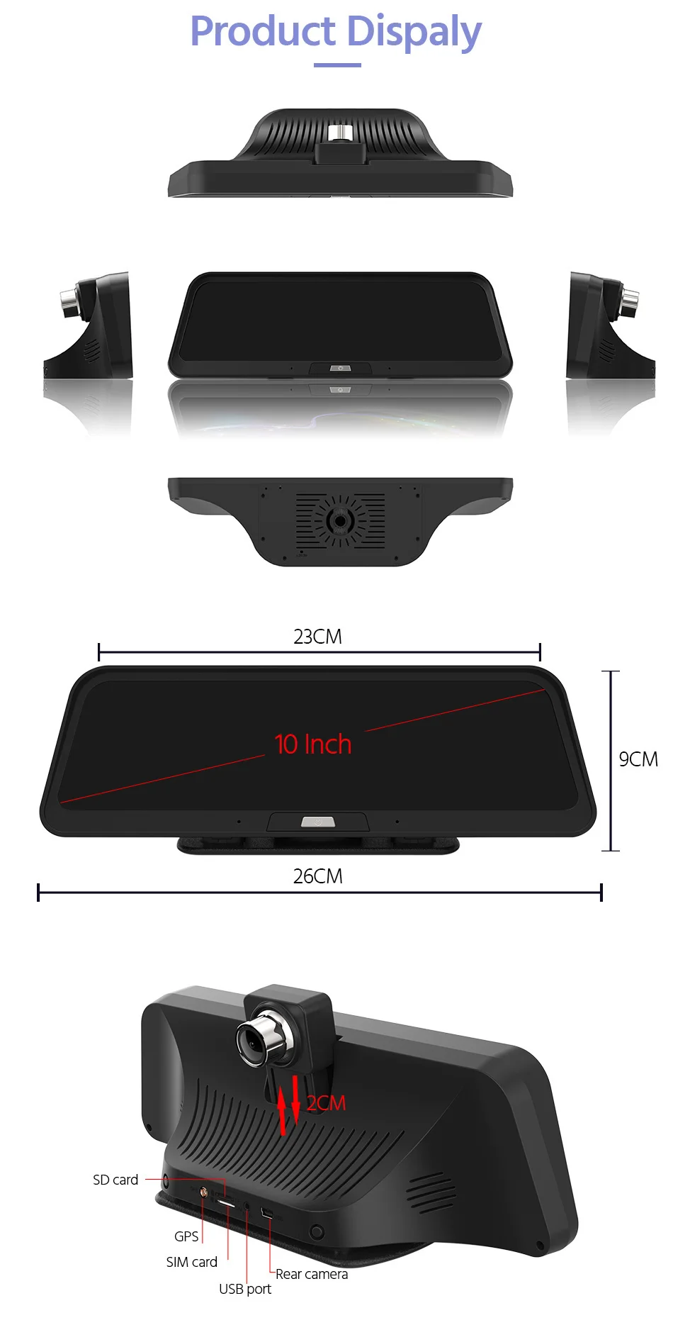AI Голосовое управление тройной экран Автомобильный видеорегистратор Android 8,1 Dash камера 4G GPS навигация 10 дюймов зеркало заднего вида видеорегистратор ADAS