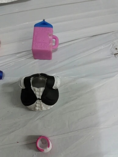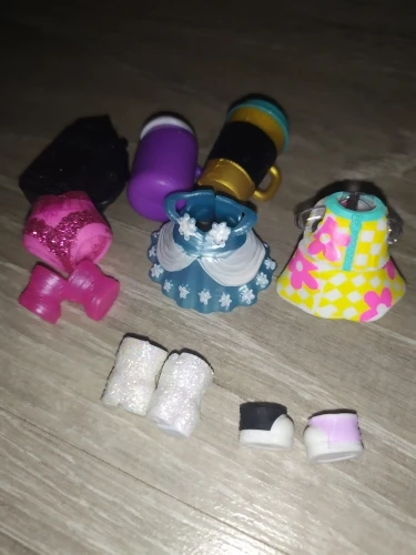 Товаром довольна. Ни какого запах нет. Пришла посылка быстро дней за 20,вот в током пакете. Розовое боди(блестки остаются на руках) и жёлтый топ с юбкой, из мягкой резины. И более похожи на оригиналы. Голубое из более жёсткой резины, как подделки. Белые сапожки блестящие, вроде не сыпятся, но на одном не прорезан разрез для удобства одевания. На куклах сидят наряды хорошо!