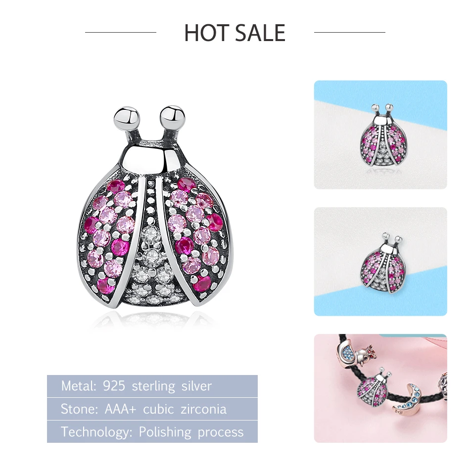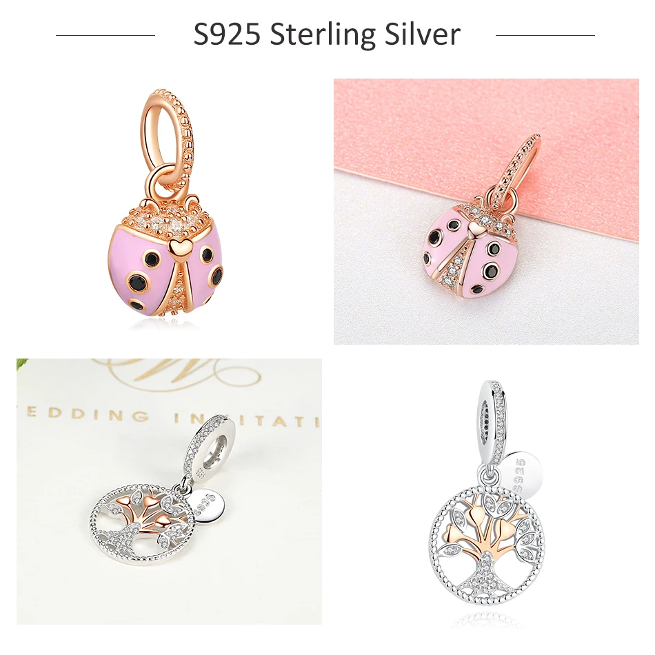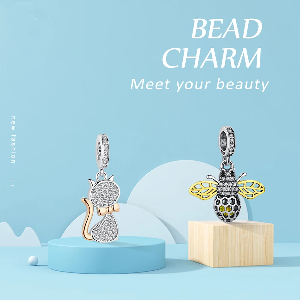 Подлинное 925 пробы серебро Божья коровка пчела Корона Золотое любовное Сердце Бусины Подходят оригинальный браслет с шармами "сделай сам" для изготовления ювелирных изделий