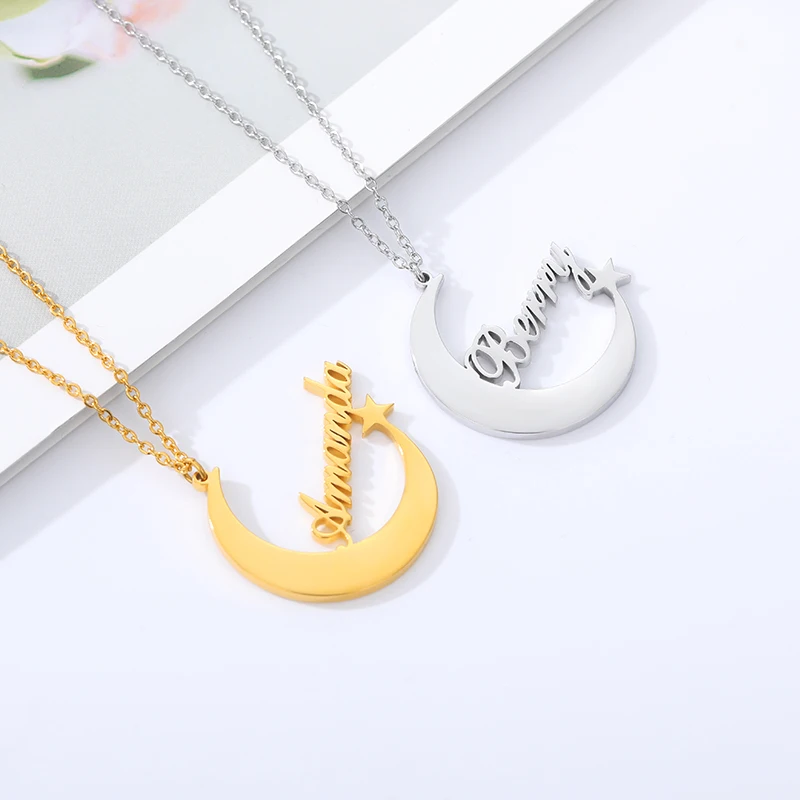 Персонализированное ожерелье с английским именем, женское креативное ожерелье из нержавеющей стали с Луной и звездой, ожерелье с кулоном, ювелирные изделия BFF