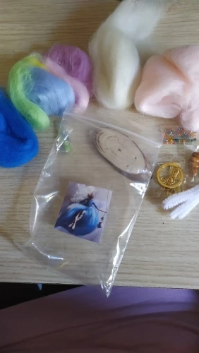 Она такая милая! Шерсть была очень хорошего качества, и ее было много. Вы должны запросить ссылку для видео-руководства, которое полезно, но все еще есть много guesswork. Упаковка поставляется с бусинами, но не было никакой инструкции о том, как это сделать. Иглы хорошо держатся. Будьте очень осторожны, это так болит, когда вы ударите себя. Они такие острые, что игла прошла прямо через кончик пальца и с другой стороны. Поэтому подумайте о том, чтобы получить защиту от пальцев. Посылка быстро прибыла с шерстью, прокладкой, 3 иглами и декоративными бусинами. Если вы не сломаете иглу (что очень легко сделать), это действительно все, что вам нужно, чтобы сделать эту милую сказку.