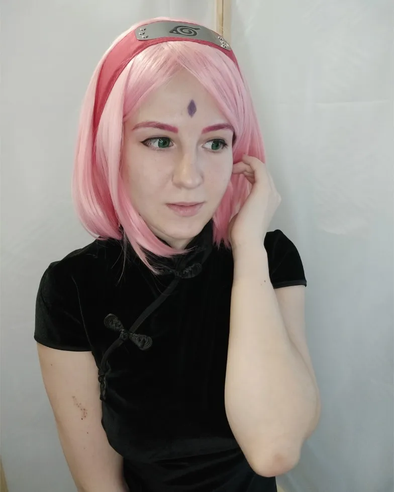 Аниме Харуно Сакура короткие розовые волосы с повязкой на голову термостойкие косплей костюм парики + парик Кепка