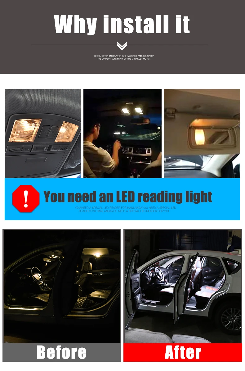 Для Hyundai Tucson 2015-2018 Количество: 7 шт. Включает: передний светильник для чтения (2 шт.) Задний светильник для чтения (2 шт.) Автомобильный солнцезащитный козырек косметический зеркальный светильник (2 шт.) Светильник для багажника/грузового пространства (1 шт.) (Чип на плате) Срок службы: 50000 часа Для Hyundai Tucson 2019-2020 Количество: 9 шт. Включает: передний светильник для чтения (2 шт.) Задний светильник для чтения (2 шт.) Автомобильный солнцезащитный козырек косметический зеркальный светильник (2 шт.) Светильник для багажника/грузового пространства (1 шт.) Светильник номерного знака (2 шт.) (Чип на плате) Срок службы: 50000 часа Светодиодный светильник имеет следующие особенности и преимущества: 1. Легко установить, подключить и играть, нет необходимости менять линию, 2. Энергосбережение, низкое энергопотребление, высокая светоотдача, низкий ток нагрузки, сейчас масло слишком дорого, 10% расхода топлива используется на автомобильной лампе, И переключение на светодиодный светильник может эффективно экономить расход топлива и защищать автомобильную линию. 3. Низкая температура, Более благоприятная для безопасности вождения. 4. Сильное сопротивление землетрясению, отсутствие стекла, структура вольфрамовой проволоки. 5. Долговечность, долговечность 6. Чистый цвет, яркий цвет и высокая яркость. Примечание: Пожалуйста, свяжитесь с нами, прежде чем дать плохие отзывы, если у продуктов есть некоторые проблемы. Мы постараемся сделать все возможное, чтобы решить проблему для вас. Спасибо за понимание