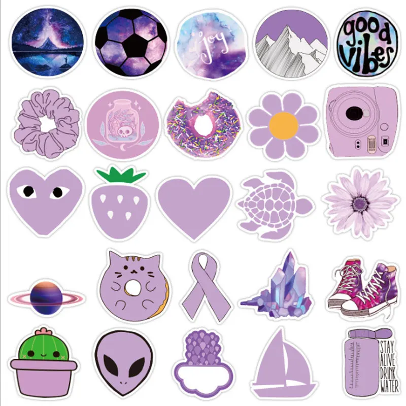 50 шт., модные стильные фиолетовые милые водонепроницаемые наклейки, наклейки для компьютера, эстетические модные наклейки для MacBook, ноутбука, телефона, гитары для детей, девочек-подростков