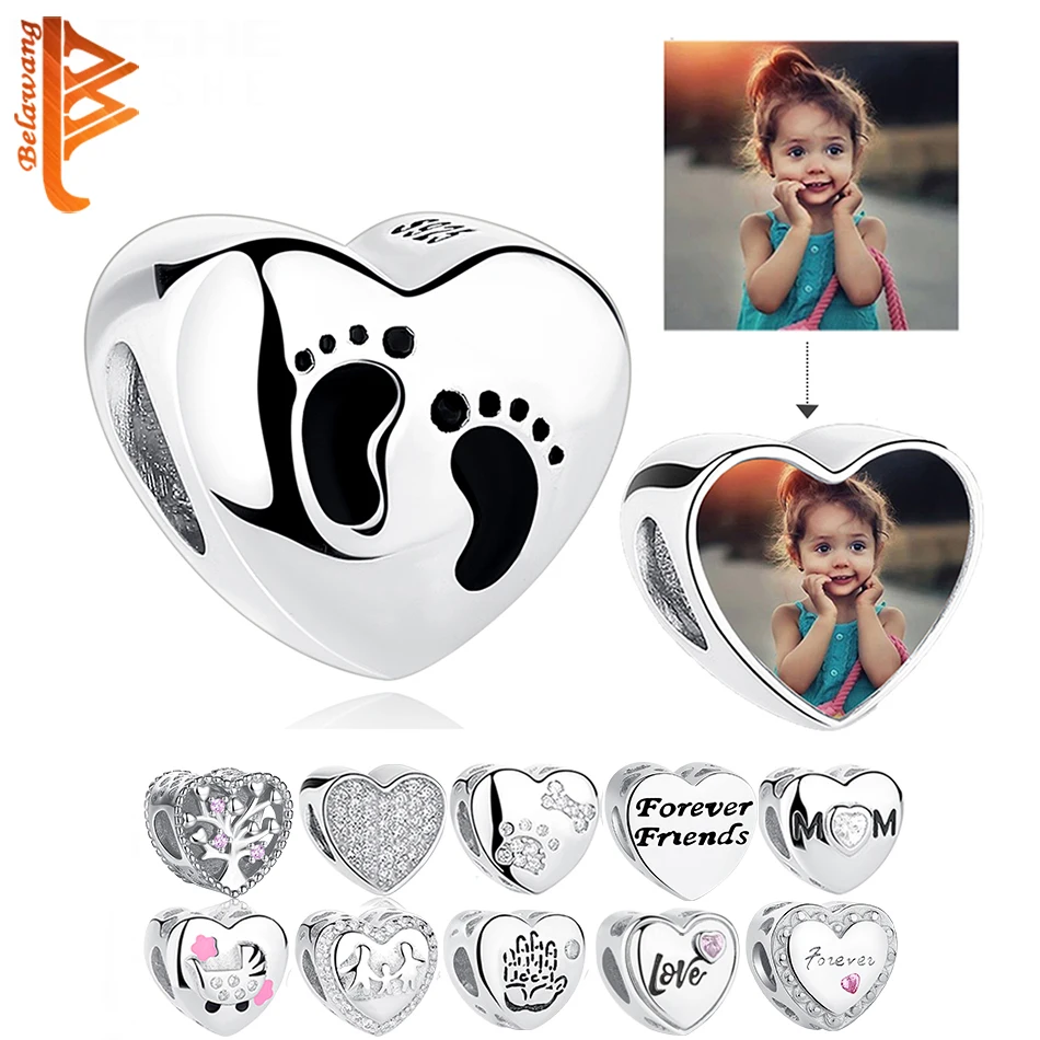 Подвески в форме сердца, для браслета Пандоры, серебряные бусины 925 пробы