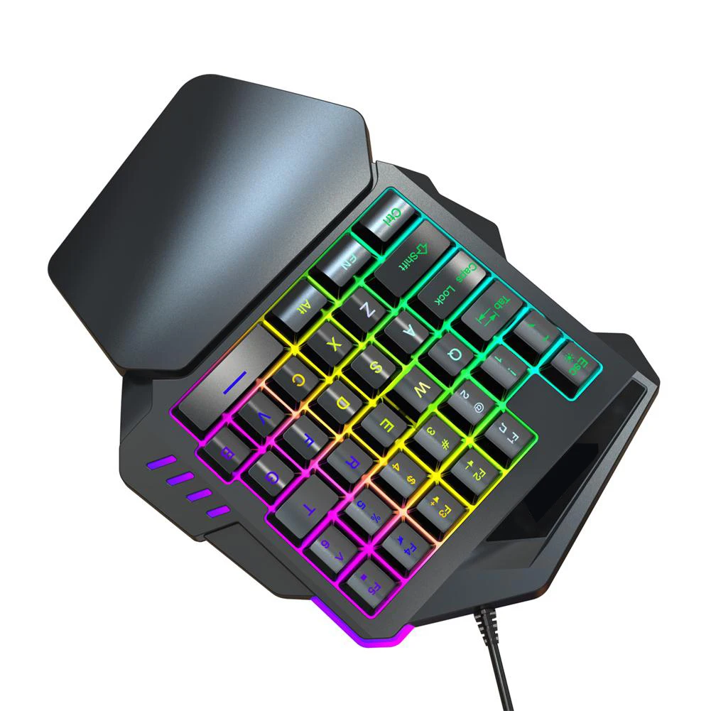 Игровая клавиатура для одной руки с RGB-подсветкой, портативная игр...