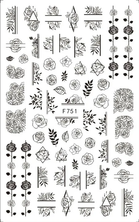 3D слайдер для ногтей, 1 лист, черный дизайн ногтей, готические буквы, линейные наклейки, наклейки с бабочками, наклейки для маникюра, декор для дизайна ногтей