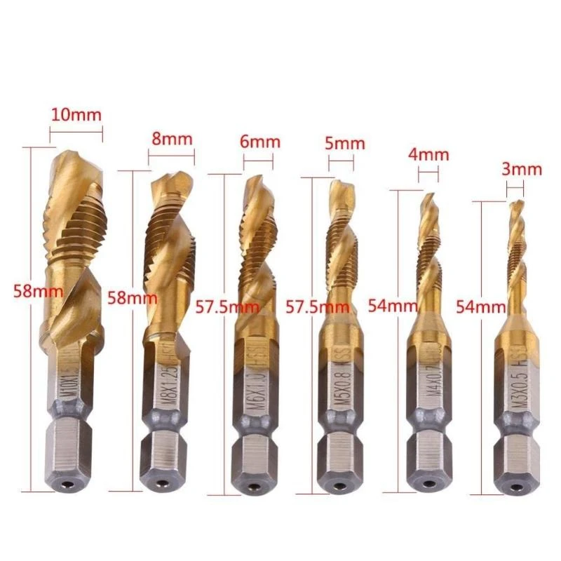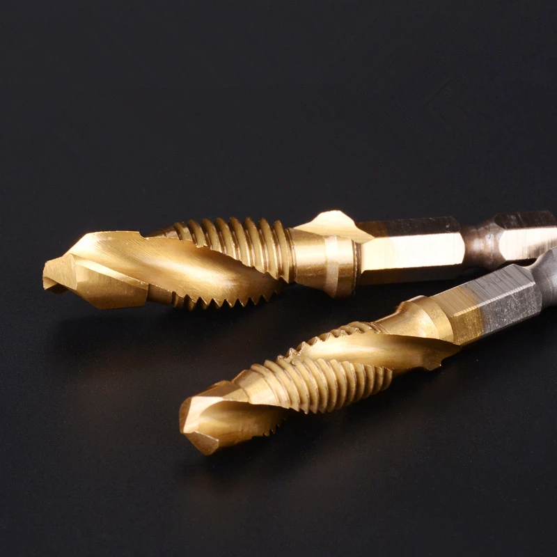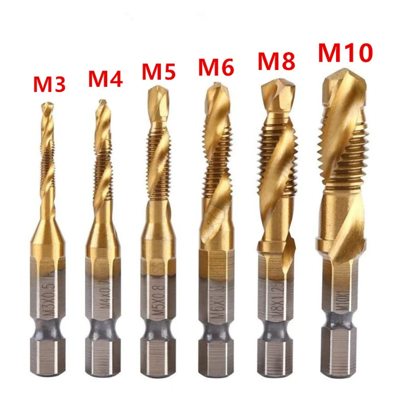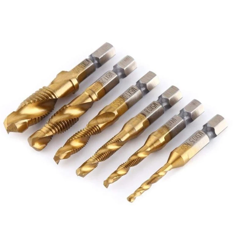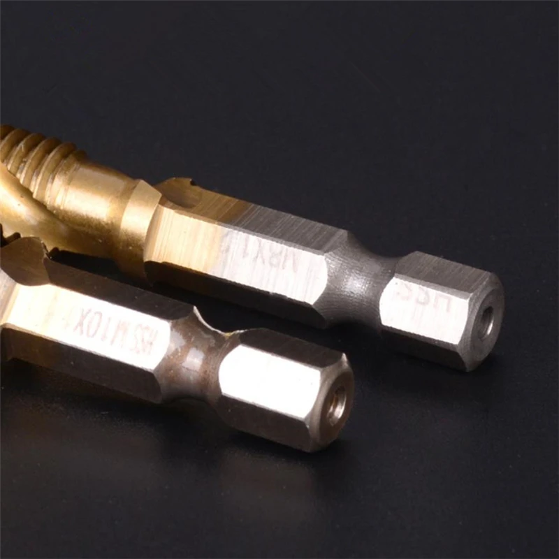 M3-M10 сверление и нарезание резьбы, комбинированная насадка с шестигранным хвостовиком 14 дюйма из быстрорежущей стали с титановым покрытием