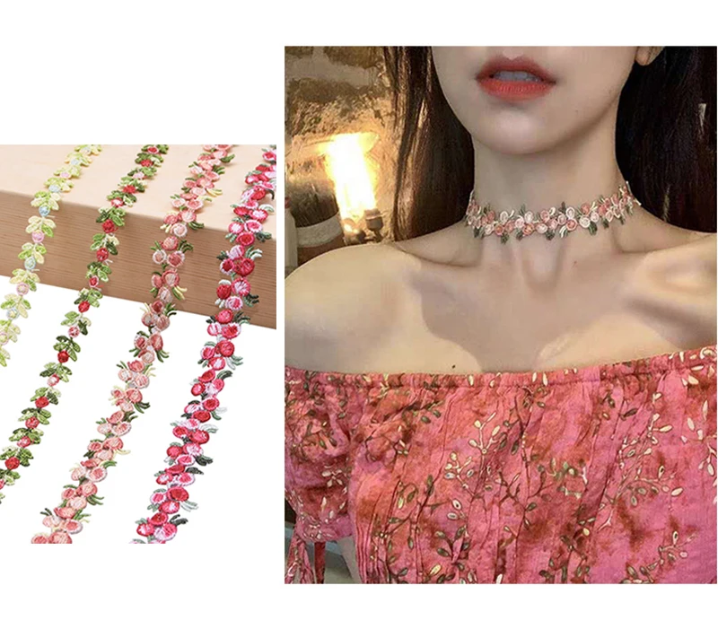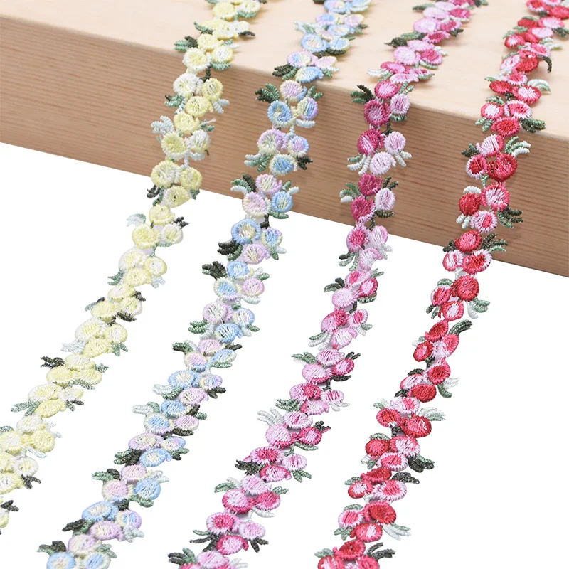 2 ярда вышитая вишня кружевная отделка цветок полиэстер ленты ткань Свадебные украшения DIY Швейные аксессуары принадлежности ремесла