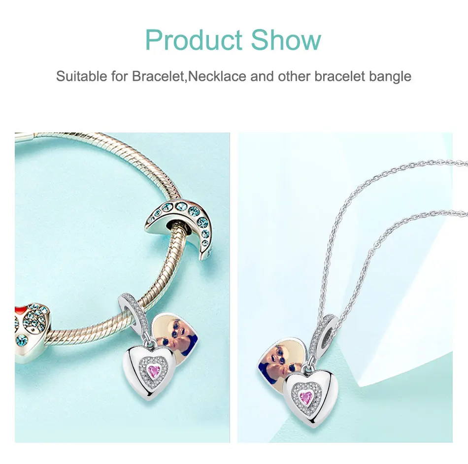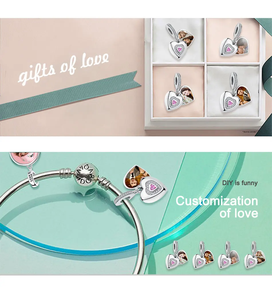 925 стерлингового серебра бисера любовь навсегда сердце кулон Шарм, подходят к оригинальному браслету, персонализированная цифровая печать, сделай сам, ювелирное изделие
