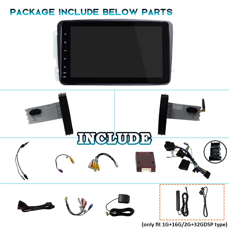 Этот блок будет соответствовать следующей модели автомобиляДля Mercedes-Benz A-W1 68 (1998-2002) Mercedes-Benz C-W203 (2000-2005)Для Mercedes-Benz Viano ( 2004-2006) Mercedes-Benz G-W463 (1998-2004)Для Mercedes-Benz Vito (2004-2006)Для Mercedes-Benz Vaneo (2002-2005)Для Mercedes-Benz CLK-C209 \ W209 (1998- 2004)Примечание: модель и год только для справки, пожалуйста, подтвердите форму и размер центральной консоли перед подачей заявки.1. Подарок = инструменты + микрофон + копия файлов карты в GPS внутри (вы можете использовать gps напрямую, не включая карту карты).