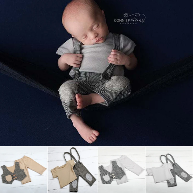 Dvotinst реквизит для фотосъемки новорожденных джентльменов наряды клетчатый жилет подтяжки брюки фотография Аксессуары для фотосъемки реквизит для фотосъемки