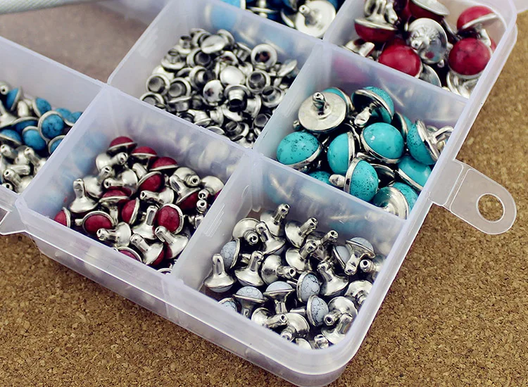 320 комплектов, разные размеры и цвета, латунные акриловые бирюзовые заклепки для кожаных шпилек и шипов для одежды, сумок, ремней, аксессуары сделай сам