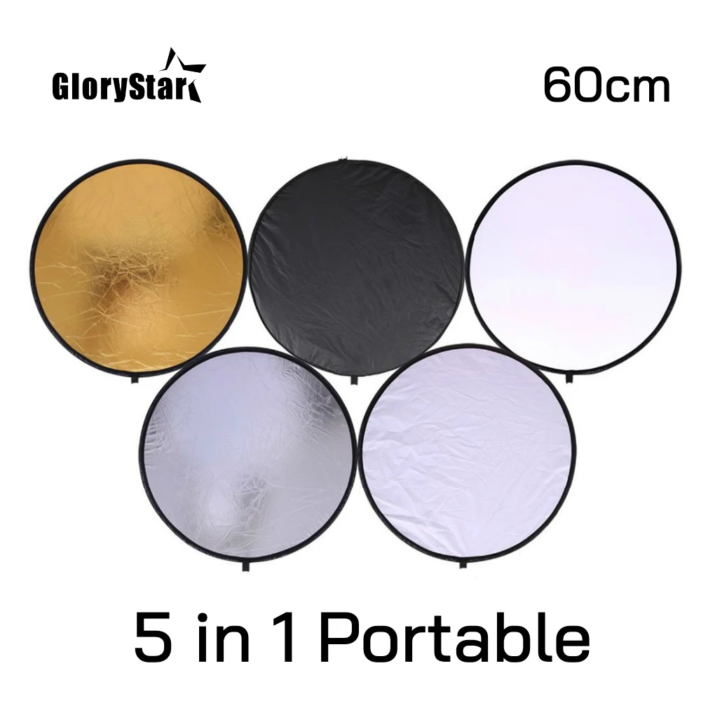 Портативный складной Круглый отражатель для фотостудии, 24 дюйма, 60 см, 5 в 1