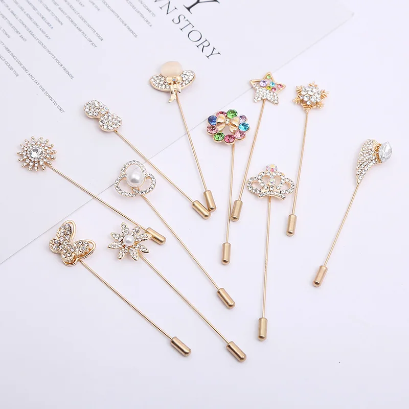 Модные Броши Стразы в форме короны, цветов, звезд, жемчужный шарф, искусственный кардиган, длинные иглы, цинковый сплав, Женские аксессуары