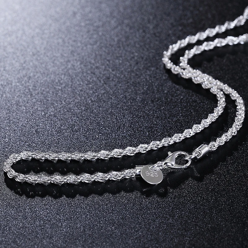 925 серебро 3 мм Твист веревочные цепи для женщин и мужчин Мода 16 "18" 20 "22" 24 "ожерелья ювелирные аксессуары