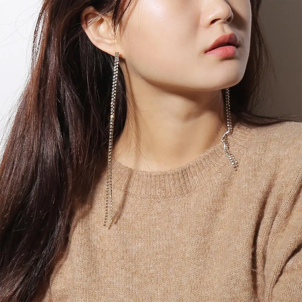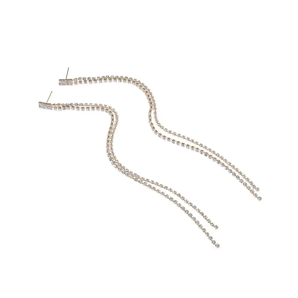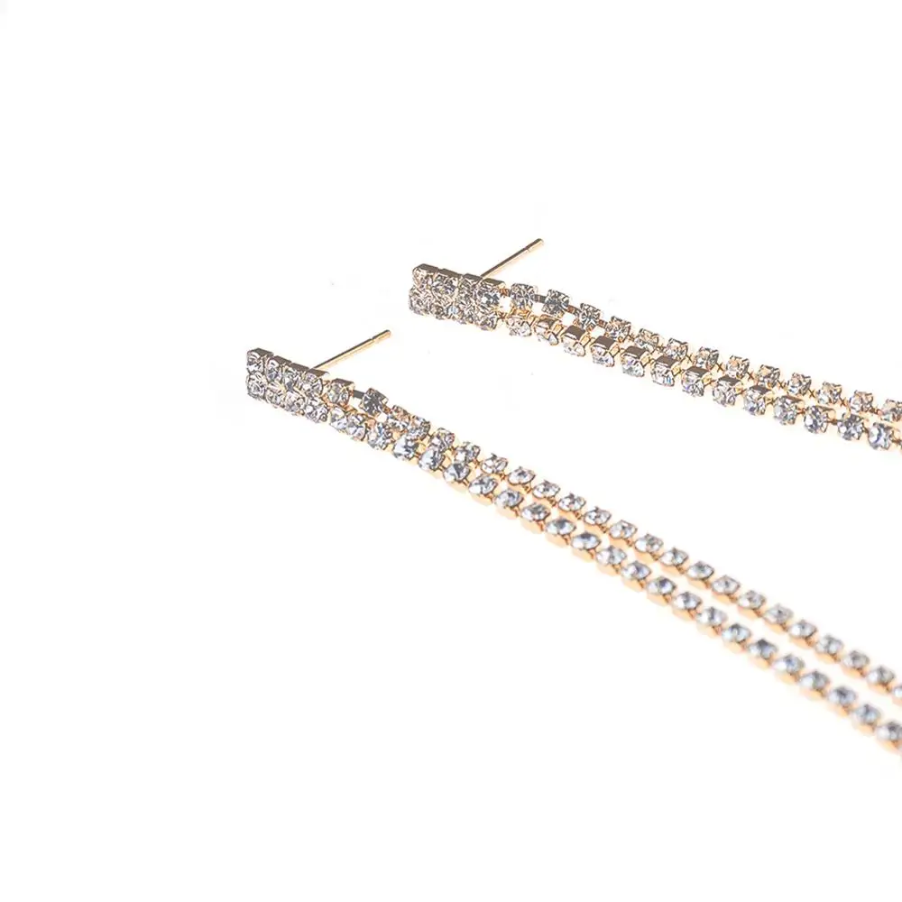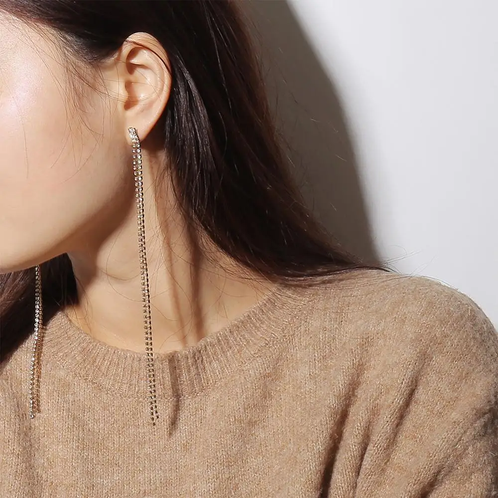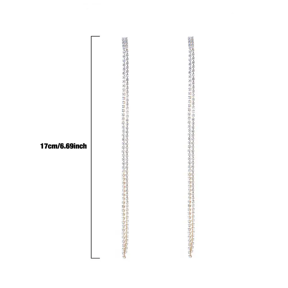 Висячие серьги Стразы с кристаллами длиной 17 см, 1 пара, женские модные висячие серьги с двойным хвостом и кисточкой, Подарочные ювелирные изделия, металлическая цепочка