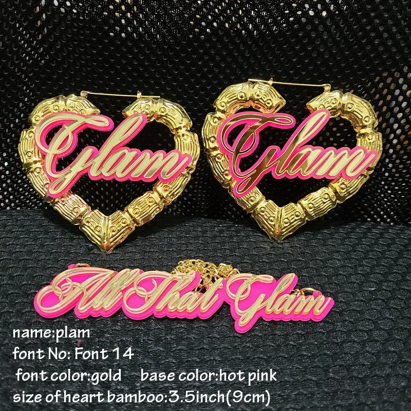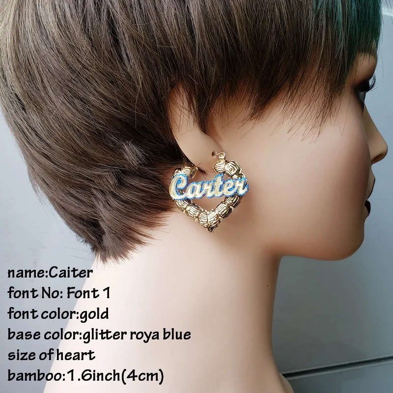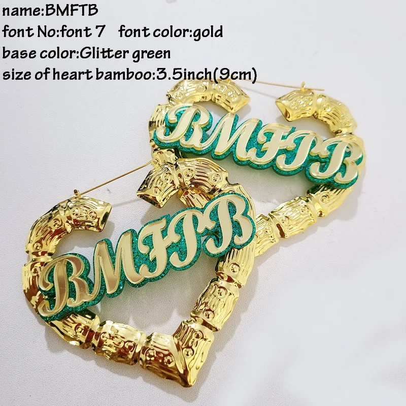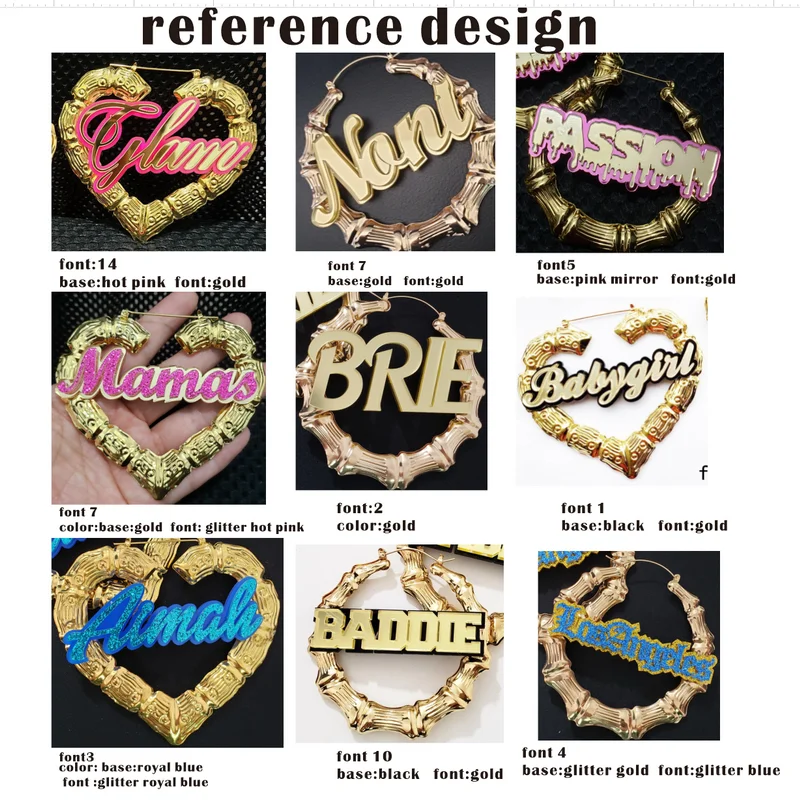 Серьги из бамбука, позолоченные, с именем на заказ, в стиле хип-хоп...