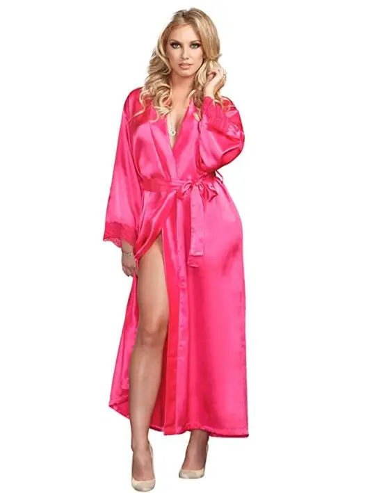 Халат женский Шелковый, атласный, кружевной, 3XL, размера плюс