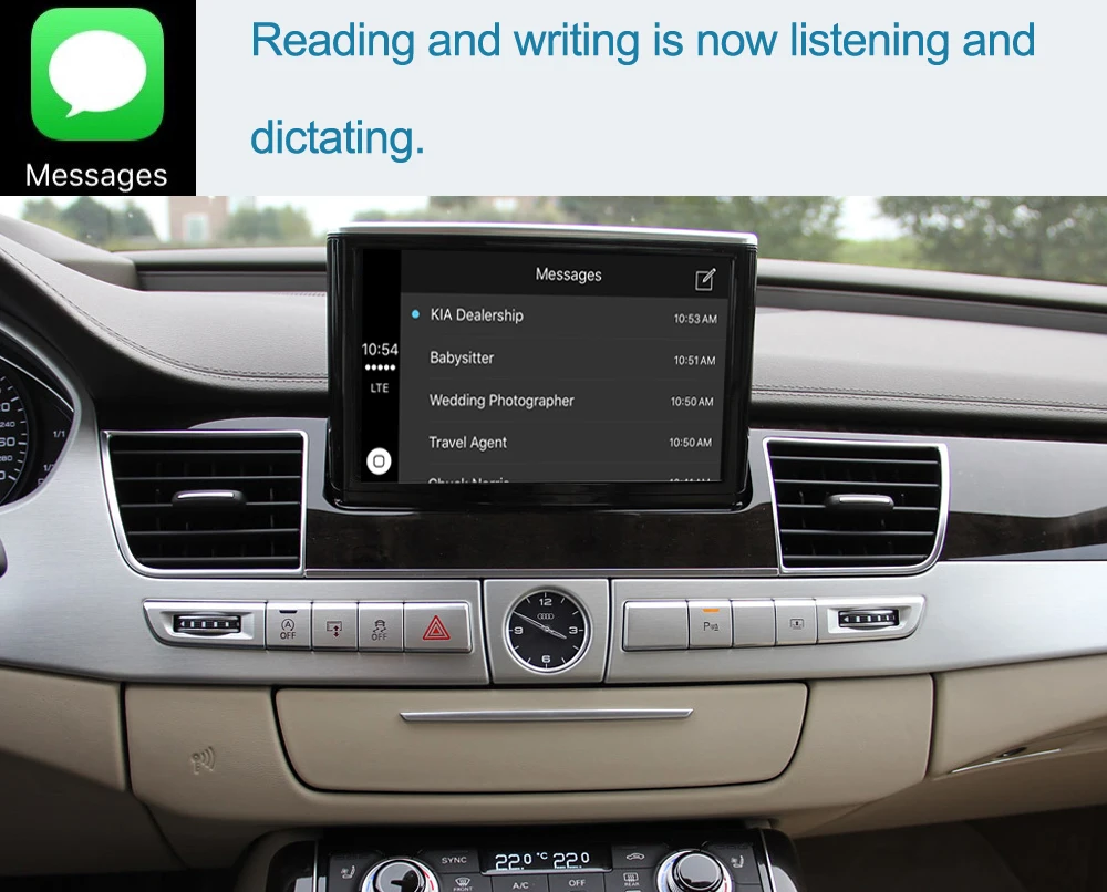 Этот потрясающий набор добавляет полную функциональность CarPlay к существующему MMI, сохраняя все оригинальные функции MMI. Система CarPlay Поддерживает кнопки и управление рулевым колесом и интегрирована с консолью или перчаточным боксом USB.