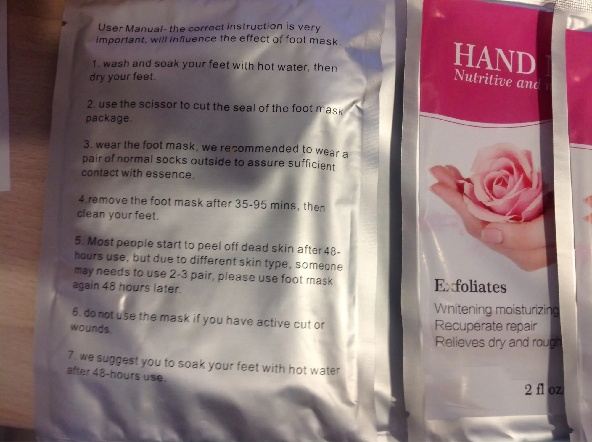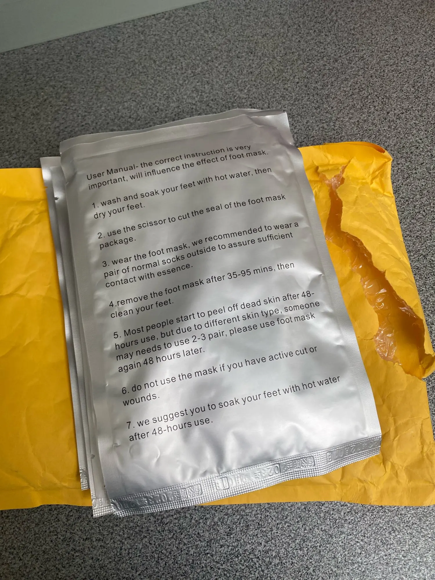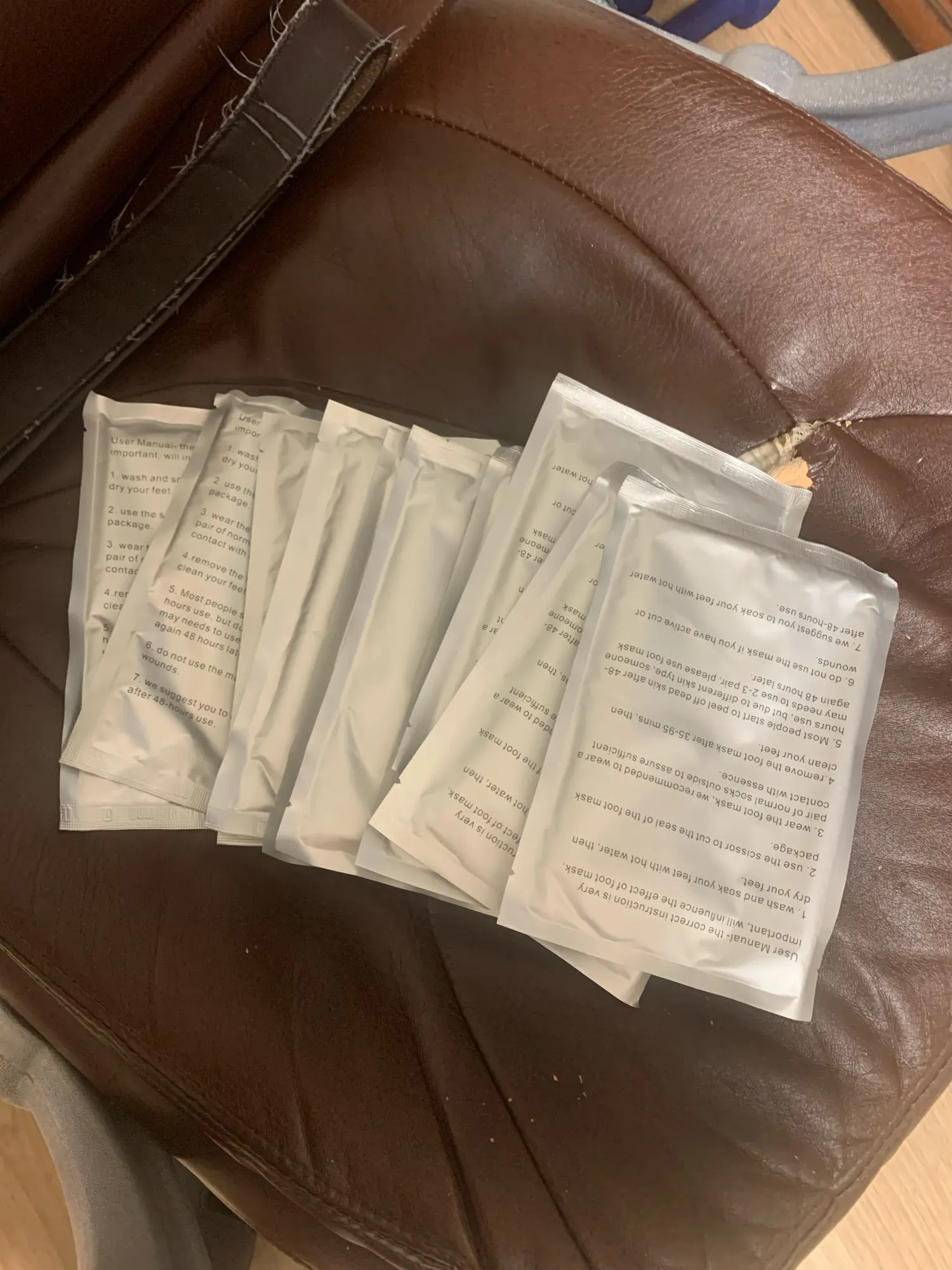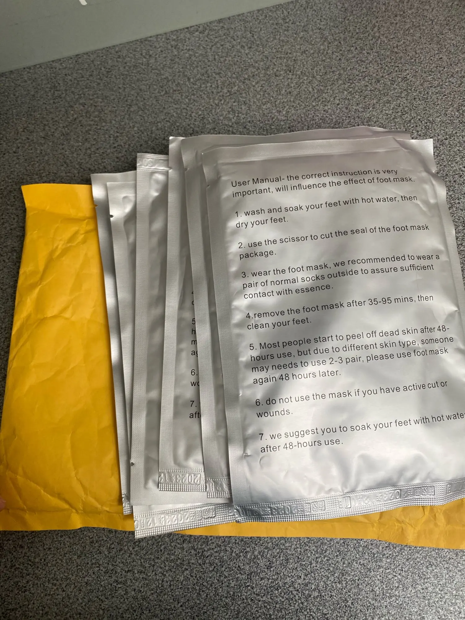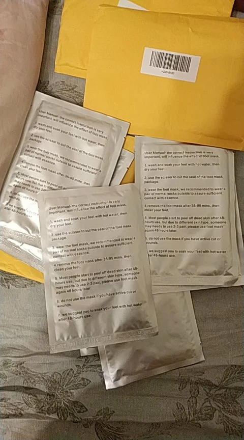 Полученная упаковка! Пробовал одну пару, и нога начала пилинг после 48 часов, увидите, как происходит!