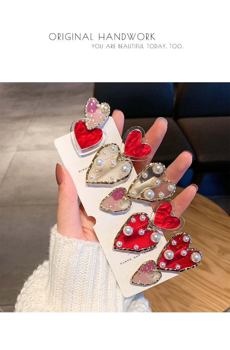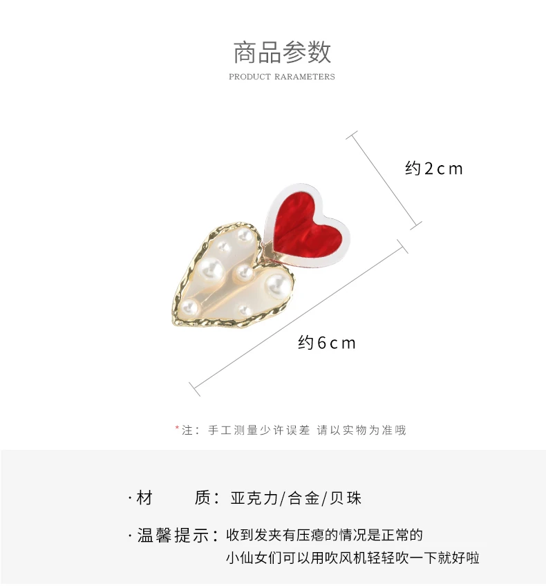 Женская заколка для волос с красным жемчугом, 1 шт.