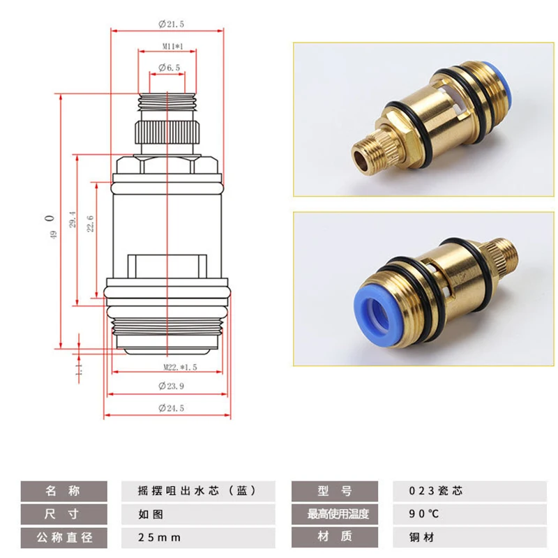 Медный быстрооткрывающийся сердечник длиной 49 мм, Смеситель для холодной и горячей воды с постоянной температурой, запчасти для ремонта стиральной машины