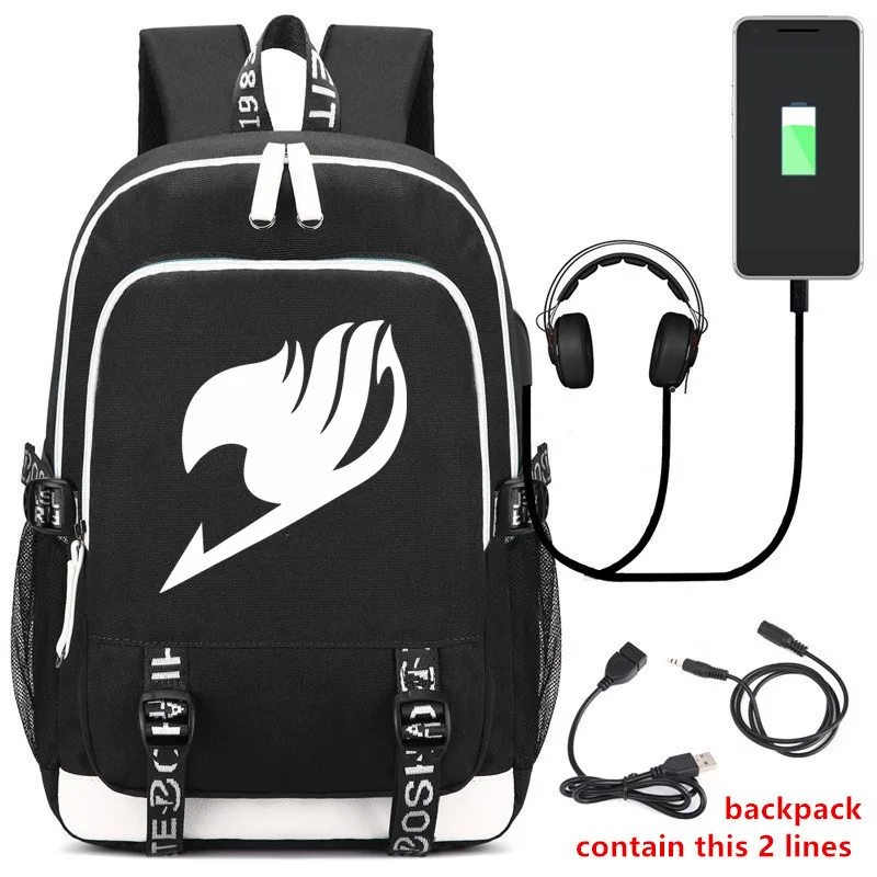 Японский рюкзак "Хвост Феи", Сумка с USB-портом/замком/интерфейсом для наушников, Студенческая сумка для ноутбука, подарки, косплей Материал: ткань Оксфорд Размер: приблизительно 44x30x15 см