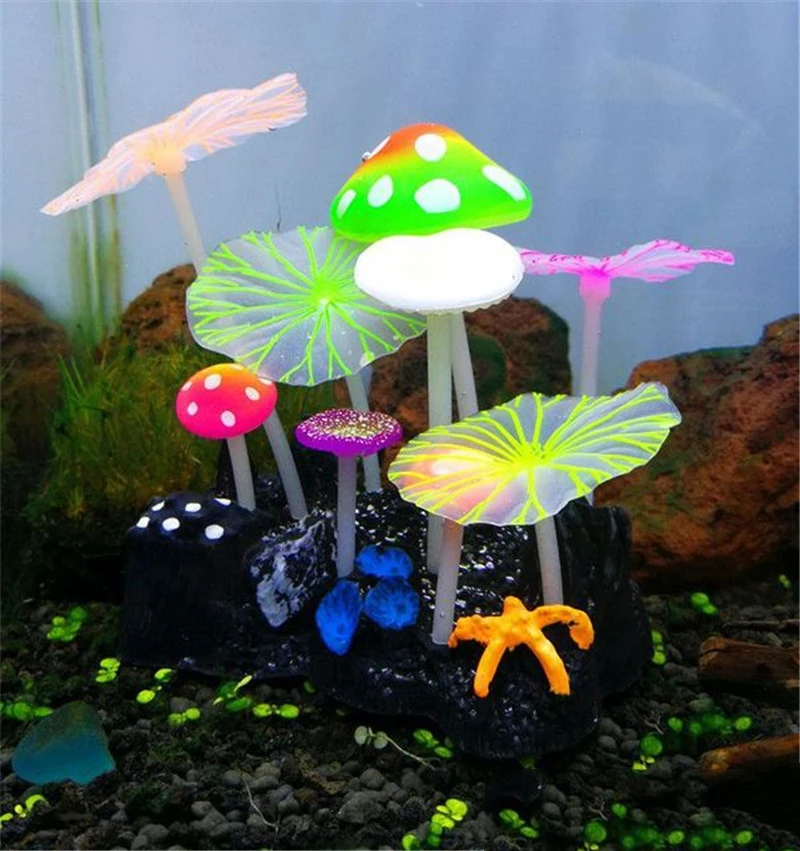 Аквариум светящийся имитация растений украшение водная трава лист лотоса гриб аквариум искусственное аквариумное растение пейзаж