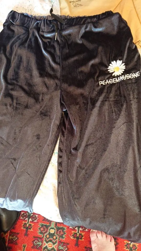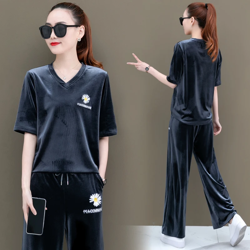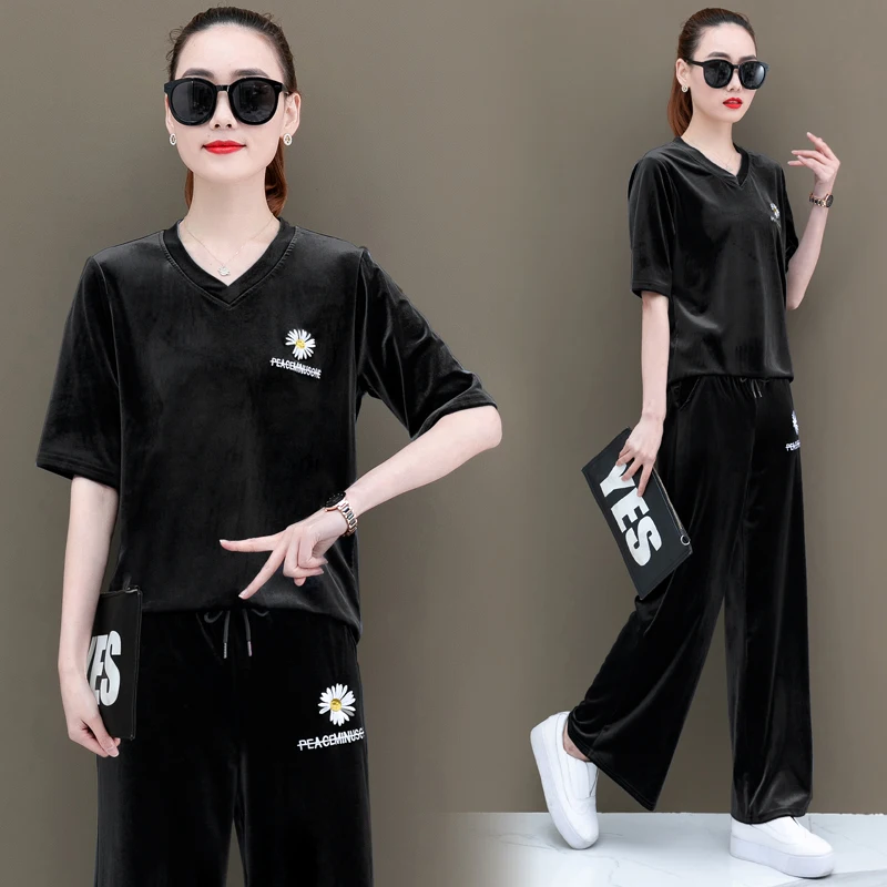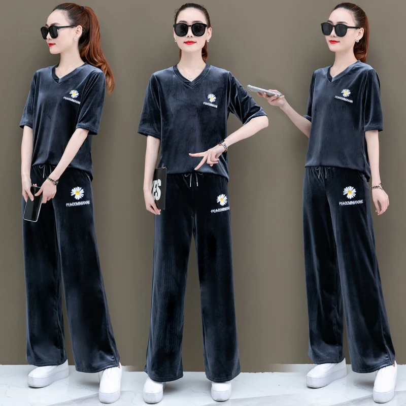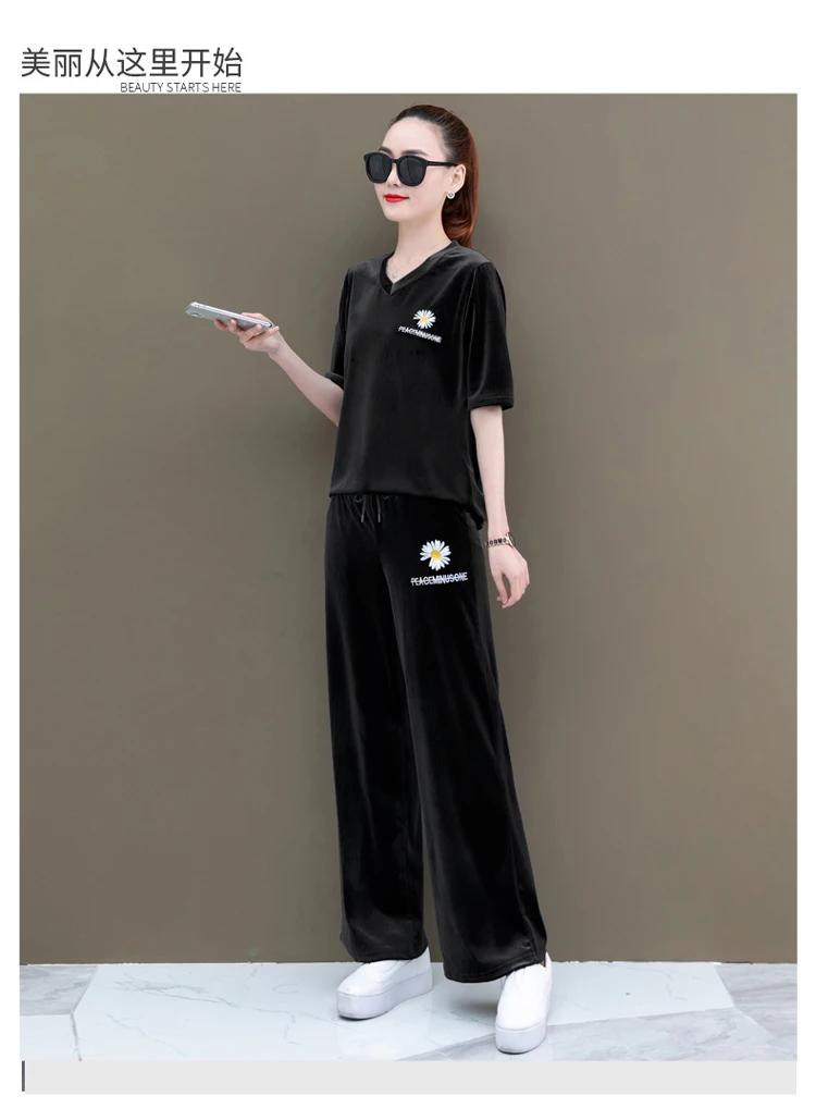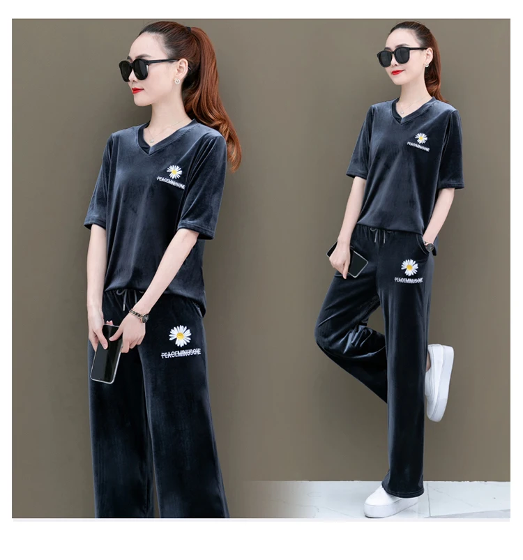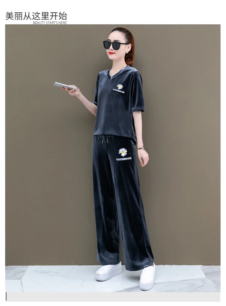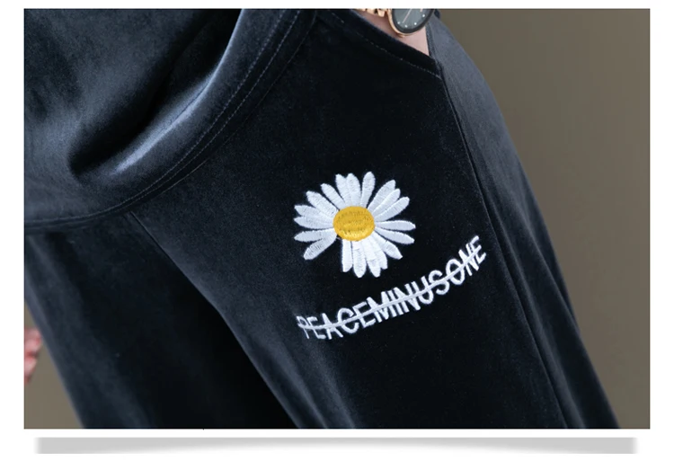 Женский вельветовый костюм, топ с принтом в виде Маргариток и брюки с широкими штанинами, лето 2020, размера плюс