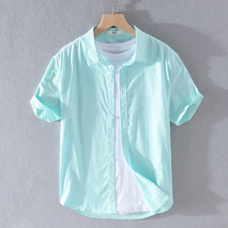 Рубашка мужская из чистого хлопка Оксфорд, стильная итальянская брендовая сорочка с короткими рукавами, однотонная модная повседневная, на лето