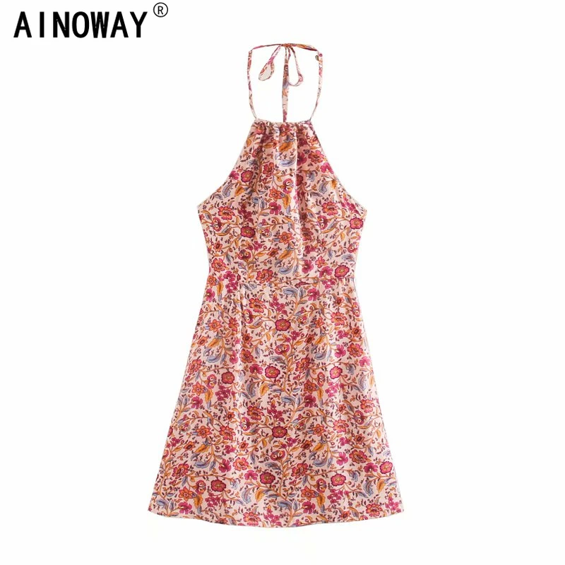 Женское винтажное пляжное платье с цветочным принтом, без рукавов, ...